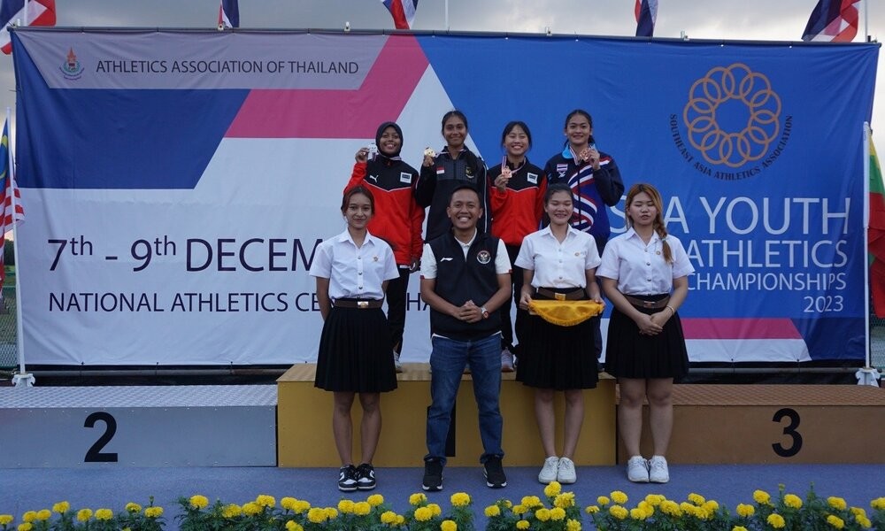 CARAPANDANG - Tim Pelajar Atletik Indonesia menunjukkan prestasi yang baik di ajang 15th Sea Youth Athletics Championships 2023, Pathum Thani, Thailand. Di hari pertama pertandingan, sebanyak 2 (dua) medali emas, 2 (dua) perak dan 1 (satu) perunggu direbut oleh tim pelajar Atletik Indonesia dari nomor lompat jauh, lempar martil yang diadakan di National Athletics Centre, Thailand (07/12).
