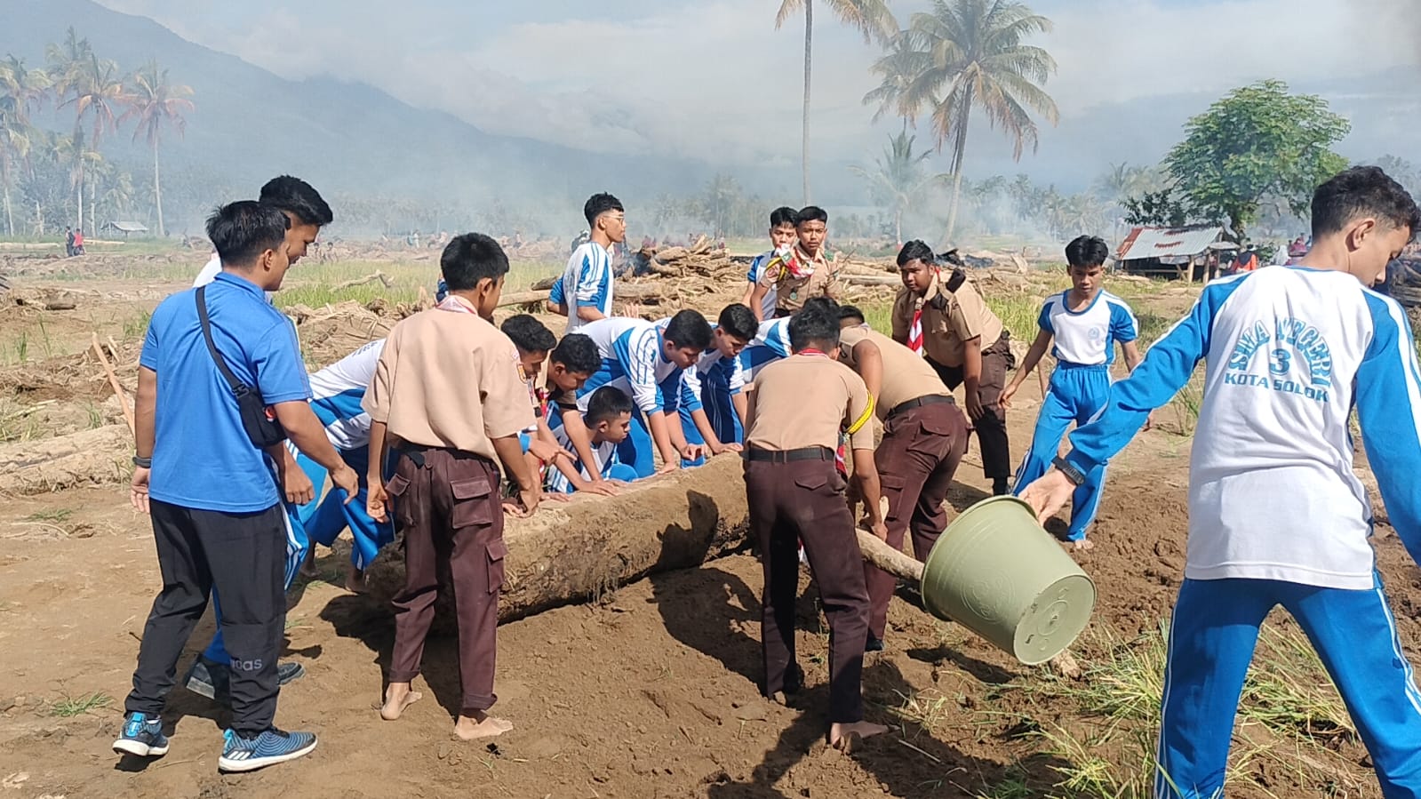 Beranda Kabupaten Solok 2.000 Pramuka hingga Alat Berat Turun Bersihkan Sawah Pascagalodo di Kabupaten Solok