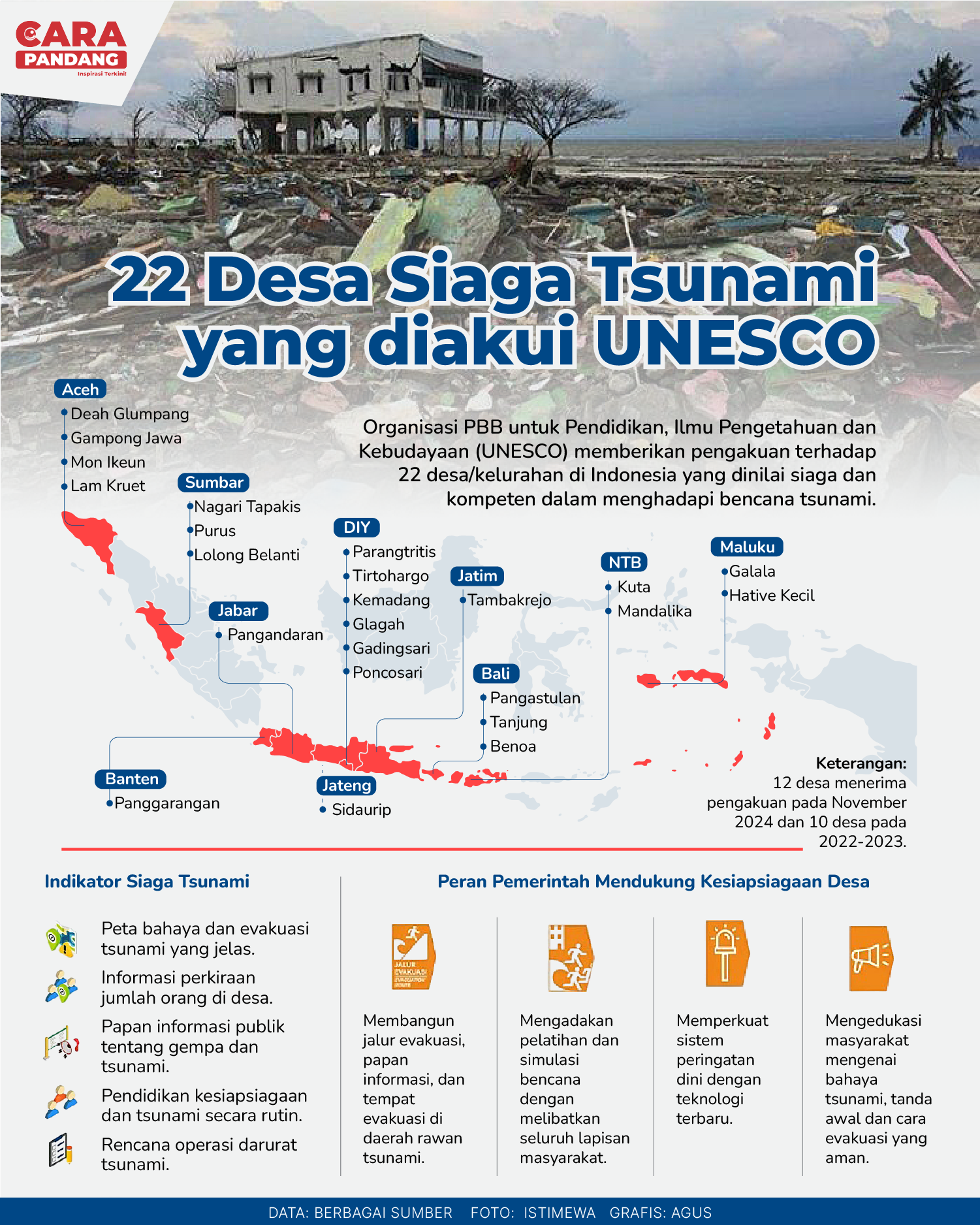 Beranda Infografis 22 Desa Siaga Tsunami yang Diakui UNESCO Infografis 22 Desa Siaga Tsunami yang Diakui UNESCO Penulis Amira Izzati - 27 Desember 2024 13:37 0 CARAPANDANG - 22 Desa Siaga Tsunami yang Diakui UNESCO Tags Berita Sebelumnya Kemenhub Minta Seluruh Perusahaan Angkutan Umum Utamakan Aspek Keselamatan Berita Berikutnya Indonesia Dalam Dilema Misi Perdamaian Dunia LEAVE A REPLY Cancel reply Comment: Please enter your comment! Name:* Please enter your name here Email:* You have entered an incorrect email address! Please enter your email address here Website: Save my name, email, and website in this browser for the next time I comment. Berita Teratas Kisah Ajaib Nabi Sulaiman dan Anak yang Berbakti kepada Orang Tua 8 Cara Merawat Kucing Kesayangan Agar Tubuhnya Selalu Sehat Minuman yang Mampu Redakan Batuk yang Menganggu Manfaat Ajaib Bawang Putih Bagi Kesehatan Lima Manfaat Super Makan Pisang Sebelum Tidur yang Jarang Diketahui Berita Terkait Berita Terkait Wajah Baru PP Tunas: Garda Terdepan Perlindungan Anak Indonesia Zoel Rachman - 31 Maret 2026 09:42 MBG 5 Hari Sepekan Masih Wacana Maliq - 30 Maret 2026 11:49 Presiden Ingin Semua Kendaraan Dikonversi ke Listrik Maliq - 30 Maret 2026 11:48 Kewaijiban PSE Terhadap Pengguna Anak Maliq - 30 Maret 2026 11:15