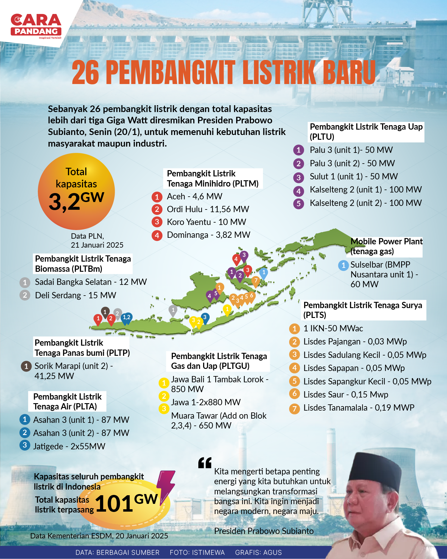 Beranda Infografis 26 Pembangkit Listrik Baru Infografis 26 Pembangkit Listrik Baru Penulis Amira Izzati - 24 Januari 2025 15:51 0 CARAPANDANG - 26 Pembangkit Listrik Baru Tags Berita Sebelumnya Gubernur Sumbar: Peluncuran "Ollin Nagari" Langkah Maju Bank Nagari dalam Pelayanan Digital Berita Berikutnya Indonesia Dalam Dilema Misi Perdamaian Dunia LEAVE A REPLY Cancel reply Comment: Please enter your comment! Name:* Please enter your name here Email:* You have entered an incorrect email address! Please enter your email address here Website: Save my name, email, and website in this browser for the next time I comment. Berita Teratas Kisah Ajaib Nabi Sulaiman dan Anak yang Berbakti kepada Orang Tua 8 Cara Merawat Kucing Kesayangan Agar Tubuhnya Selalu Sehat Minuman yang Mampu Redakan Batuk yang Menganggu Manfaat Ajaib Bawang Putih Bagi Kesehatan 8 Cara Menjaga Kesehatan Gigi dan Mulut yang Efektif Berita Terkait Berita Terkait Wajah Baru PP Tunas: Garda Terdepan Perlindungan Anak Indonesia Zoel Rachman - 31 Maret 2026 09:42 MBG 5 Hari Sepekan Masih Wacana Maliq - 30 Maret 2026 11:49 Presiden Ingin Semua Kendaraan Dikonversi ke Listrik Maliq - 30 Maret 2026 11:48 Kewaijiban PSE Terhadap Pengguna Anak Maliq - 30 Maret 2026 11:15
