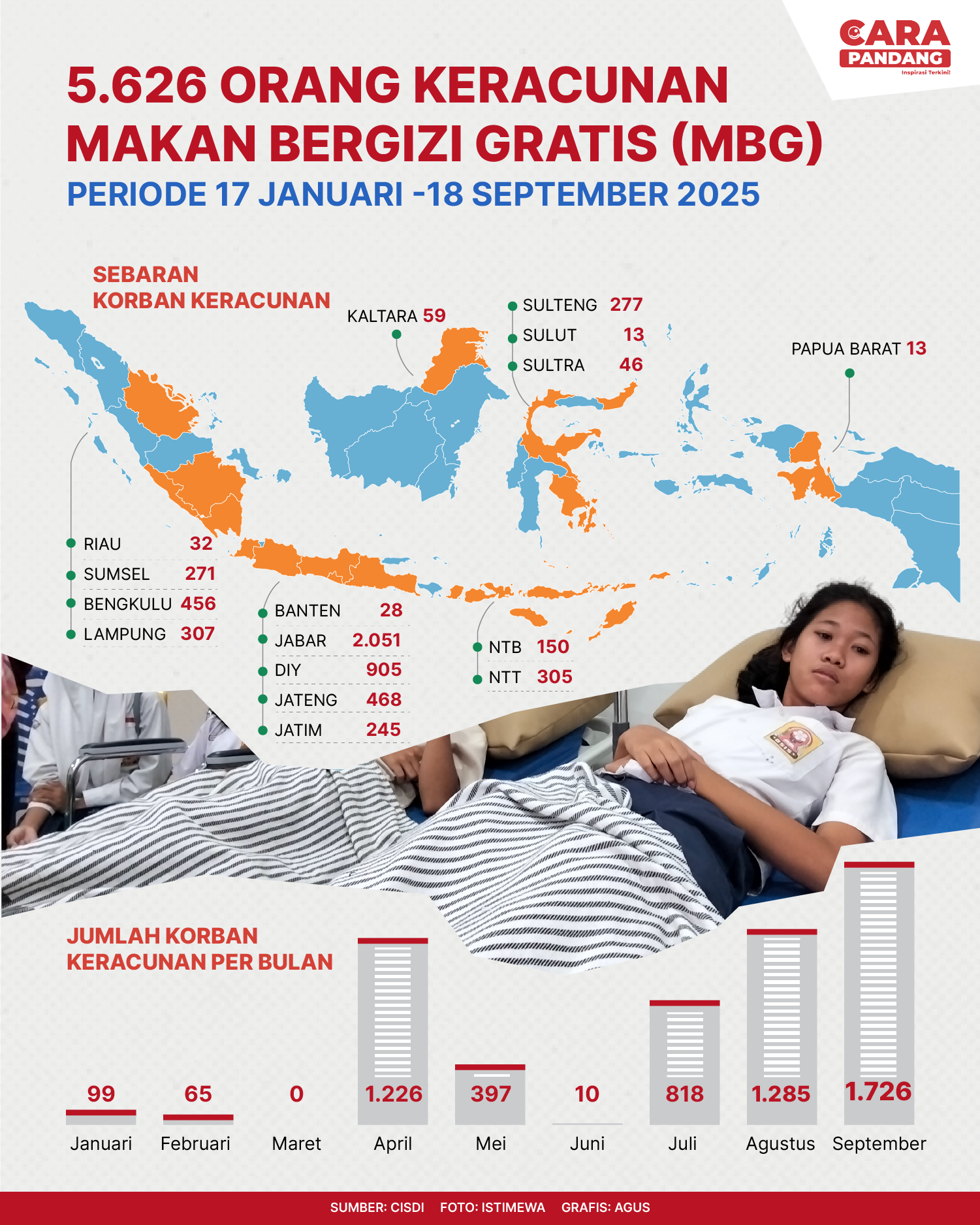 Beranda Infografis 5.626 Orang Keracunan MBG Infografis 5.626 Orang Keracunan MBG Penulis Amira Izzati - 26 September 2025 09:28 0 5.626 Orang Keracunan MBG Tags Berita Sebelumnya Kemendikdasmen Luncurkan Panduan STEM Berita Berikutnya Indonesia Dalam Dilema Misi Perdamaian Dunia LEAVE A REPLY Cancel reply Comment: Please enter your comment! Name:* Please enter your name here Email:* You have entered an incorrect email address! Please enter your email address here Website: Save my name, email, and website in this browser for the next time I comment. Berita Teratas Kisah Ajaib Nabi Sulaiman dan Anak yang Berbakti kepada Orang Tua 8 Cara Merawat Kucing Kesayangan Agar Tubuhnya Selalu Sehat Minuman yang Mampu Redakan Batuk yang Menganggu Manfaat Ajaib Bawang Putih Bagi Kesehatan 8 Cara Menjaga Kesehatan Gigi dan Mulut yang Efektif Berita Terkait Berita Terkait Wajah Baru PP Tunas: Garda Terdepan Perlindungan Anak Indonesia Zoel Rachman - 31 Maret 2026 09:42 MBG 5 Hari Sepekan Masih Wacana Maliq - 30 Maret 2026 11:49 Presiden Ingin Semua Kendaraan Dikonversi ke Listrik Maliq - 30 Maret 2026 11:48 Kewaijiban PSE Terhadap Pengguna Anak Maliq - 30 Maret 2026 11:15