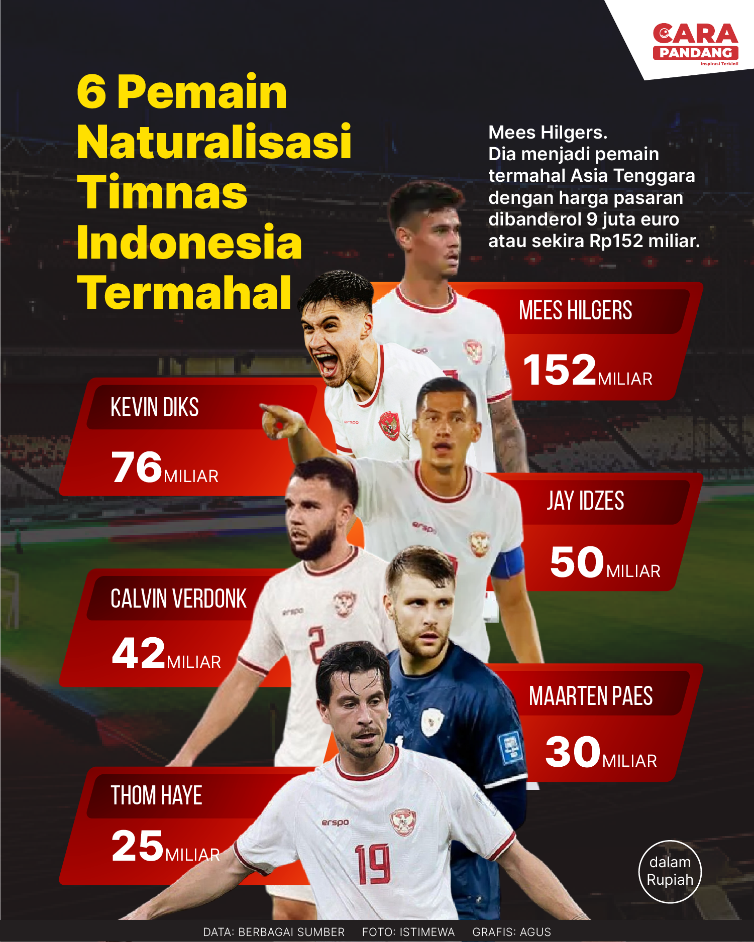 CARAPANDANG.COM - 6 Pemain Naturalisasi Timnas Indonesia Termahal.