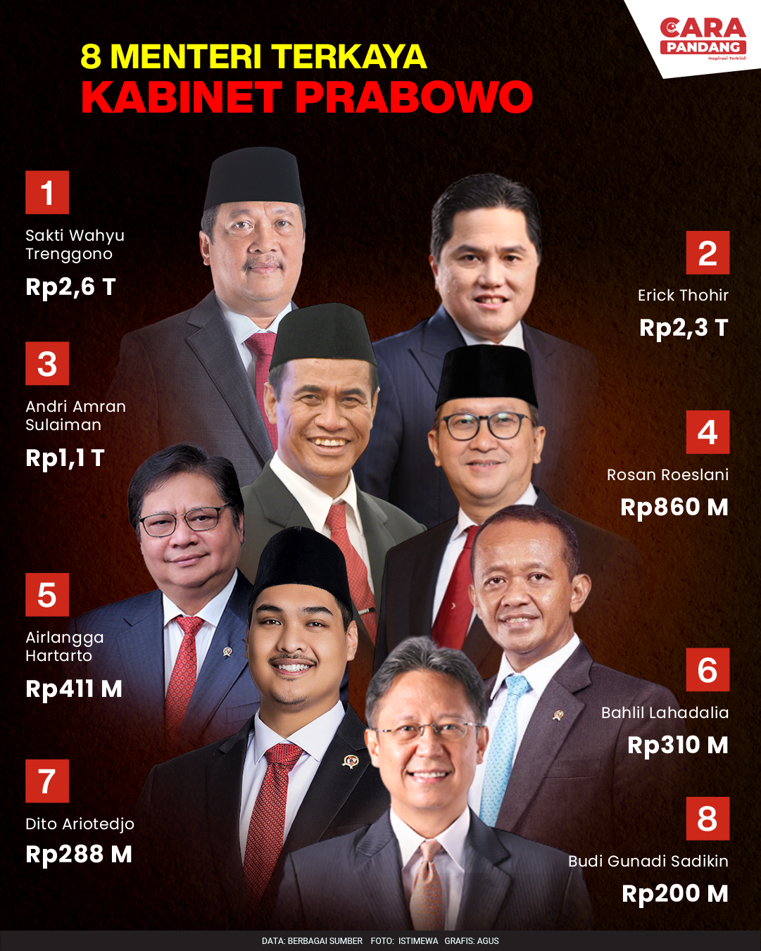 Beranda Infografis 8 Menteri Terkaya Kabinet Prabowo Infografis 8 Menteri Terkaya Kabinet Prabowo 8 Menteri Terkaya Kabinet Prabowo Penulis Edo Soeryadi - 20 November 2024 06:17 0 CARAPANDANG.COM - 8 Menteri Terkaya Kabinet Prabowo Tags Infografik Prabowo Presiden Berita Sebelumnya Ngeri! Putin Ngamuk Warning PD 3 Berita Berikutnya Indonesia Dalam Dilema Misi Perdamaian Dunia LEAVE A REPLY Cancel reply Comment: Please enter your comment! Name:* Please enter your name here Email:* You have entered an incorrect email address! Please enter your email address here Website: Save my name, email, and website in this browser for the next time I comment. Berita Teratas Kisah Ajaib Nabi Sulaiman dan Anak yang Berbakti kepada Orang Tua 8 Cara Merawat Kucing Kesayangan Agar Tubuhnya Selalu Sehat Minuman yang Mampu Redakan Batuk yang Menganggu Manfaat Ajaib Bawang Putih Bagi Kesehatan 8 Cara Menjaga Kesehatan Gigi dan Mulut yang Efektif Berita Terkait Berita Terkait Wajah Baru PP Tunas: Garda Terdepan Perlindungan Anak Indonesia Zoel Rachman - 31 Maret 2026 09:42 MBG 5 Hari Sepekan Masih Wacana Maliq - 30 Maret 2026 11:49 Presiden Ingin Semua Kendaraan Dikonversi ke Listrik Maliq - 30 Maret 2026 11:48 Kewaijiban PSE Terhadap Pengguna Anak Maliq - 30 Maret 2026 11:15