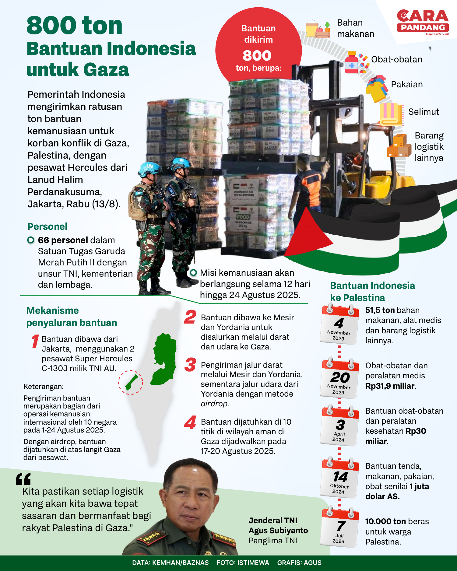 Beranda Infografis 800 Ton Bantuan Indonesia untuk Gaza Infografis 800 Ton Bantuan Indonesia untuk Gaza 800 Ton Bantuan Indonesia untuk Gaza. Penulis Edo Soeryadi - 15 Agustus 2025 11:18 0 CARAPANDANG.COM - 800 Ton Bantuan Indonesia untuk Gaza. Tags Infografik Gaza Indonesia Bantuan Palestina. Berita Sebelumnya Komedian Mpok Alpa Meninggal Dunia Berita Berikutnya Indonesia Dalam Dilema Misi Perdamaian Dunia LEAVE A REPLY Cancel reply Comment: Please enter your comment! Name:* Please enter your name here Email:* You have entered an incorrect email address! Please enter your email address here Website: Save my name, email, and website in this browser for the next time I comment. Berita Teratas Kisah Ajaib Nabi Sulaiman dan Anak yang Berbakti kepada Orang Tua 8 Cara Merawat Kucing Kesayangan Agar Tubuhnya Selalu Sehat Minuman yang Mampu Redakan Batuk yang Menganggu Manfaat Ajaib Bawang Putih Bagi Kesehatan 8 Cara Menjaga Kesehatan Gigi dan Mulut yang Efektif Berita Terkait Berita Terkait Wajah Baru PP Tunas: Garda Terdepan Perlindungan Anak Indonesia Zoel Rachman - 31 Maret 2026 09:42 MBG 5 Hari Sepekan Masih Wacana Maliq - 30 Maret 2026 11:49 Presiden Ingin Semua Kendaraan Dikonversi ke Listrik Maliq - 30 Maret 2026 11:48 Kewaijiban PSE Terhadap Pengguna Anak Maliq - 30 Maret 2026 11:15