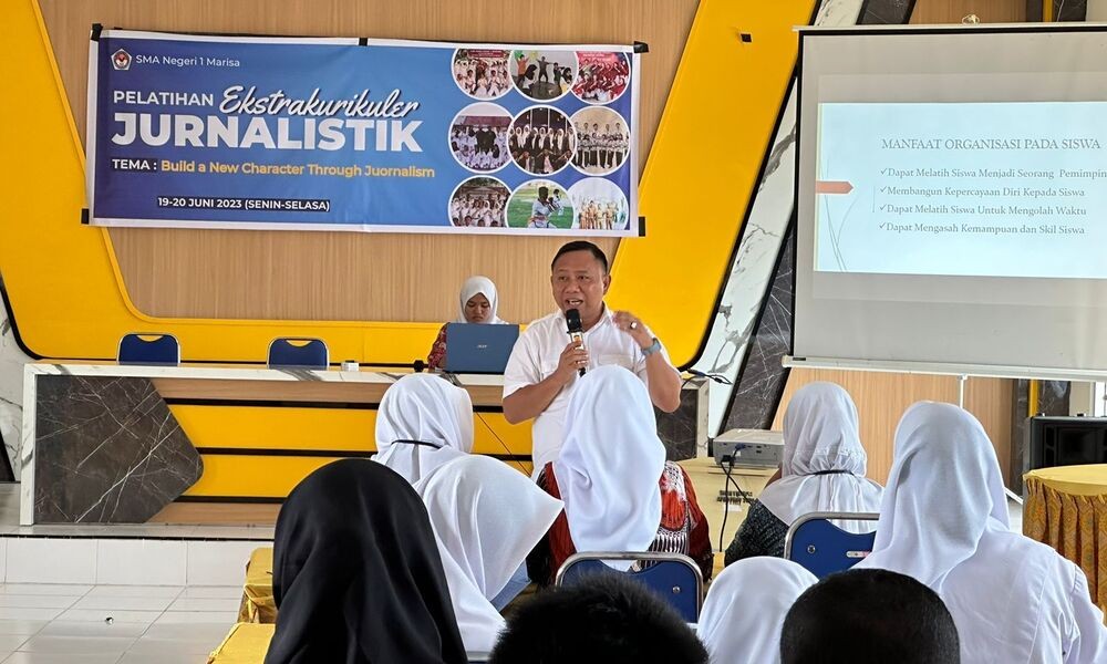 POHUWATO, CARAPANDANG.COM - Abdul Rahman Murad dipercayakan sebagai salah satu pemateri Pelatihan Ekstrakurikuler Jurnalistik yang dilaksanakan oleh Sekolah Menengah Atas (SMA) Negeri 1 Marisa.