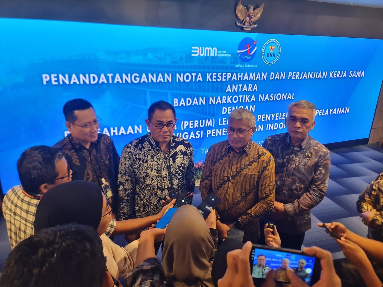 "Kerja sama ini merupakan langkah proaktif AirNav Indonesia dalam menciptakan lingkungan kerja yang bersih dari narkotika guna menjamin keselamatan, keamanan, dan kelancaran pelayanan navigasi penerbangan," kata Direktur Utama AirNav Indonesia Capt. Avirianto Suratno usai penandatanganan MoU dan perjanjian kerja sama antara BNN dan AirNav, di Tangerang, Selasa.