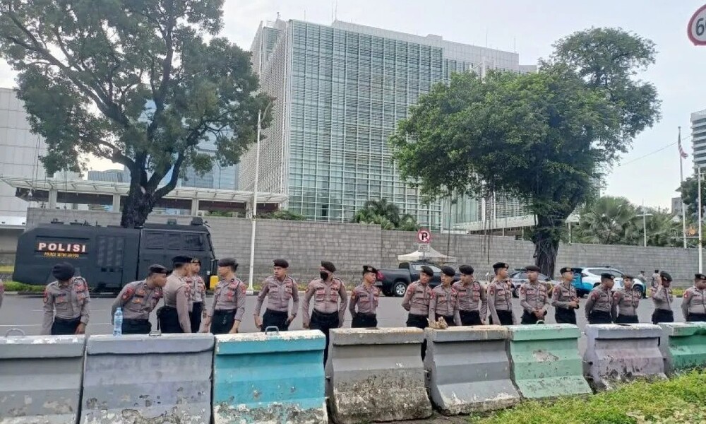 CARAPANDANG - Polisi mengerahkan sedikitnya 1.400 personel keamanan guna menjaga Hari Aksi Global untuk Gaza atau 100 Hari Genosida Gaza di depan Kedutaan Besar (Kedubes) Amerika Serikat (AS), Jakarta Pusat, Sabtu.