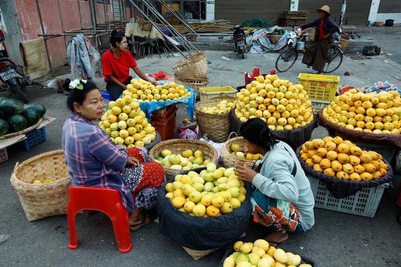 Seorang pedagang menjual kulit pohon Thanaka di sebuah pasar lokal di Mandalay, Myanmar, pada 11 Mei 2025. (CARPAN/Xinhua/Myo Kyaw Soe)
