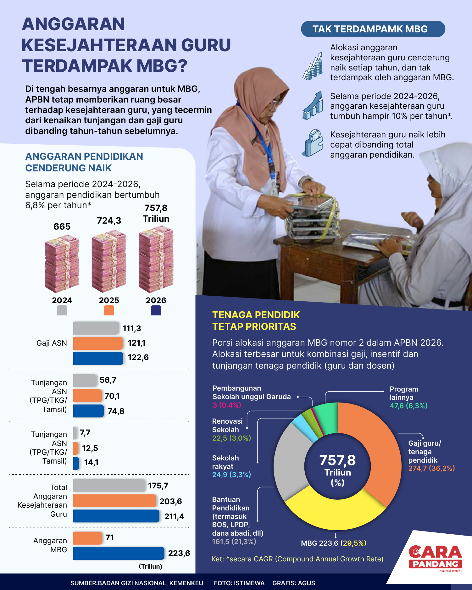 Beranda Infografis Anggaran Kesejahteraan Guru Terdampak MBG? Infografis Anggaran Kesejahteraan Guru Terdampak MBG? Penulis Amira Izzati - 31 Januari 2026 23:16 0 Anggaran Kesejahteraan Guru Terdampak MBG? Tags Berita Sebelumnya WHO Sebut 2 Kasus Virus Nipah Dilaporkan di India Berita Berikutnya Indonesia Dalam Dilema Misi Perdamaian Dunia LEAVE A REPLY Cancel reply Comment: Please enter your comment! Name:* Please enter your name here Email:* You have entered an incorrect email address! Please enter your email address here Website: Save my name, email, and website in this browser for the next time I comment. Berita Teratas Kisah Ajaib Nabi Sulaiman dan Anak yang Berbakti kepada Orang Tua 8 Cara Merawat Kucing Kesayangan Agar Tubuhnya Selalu Sehat Minuman yang Mampu Redakan Batuk yang Menganggu Manfaat Ajaib Bawang Putih Bagi Kesehatan 8 Cara Menjaga Kesehatan Gigi dan Mulut yang Efektif Berita Terkait Berita Terkait Wajah Baru PP Tunas: Garda Terdepan Perlindungan Anak Indonesia Zoel Rachman - 31 Maret 2026 09:42 MBG 5 Hari Sepekan Masih Wacana Maliq - 30 Maret 2026 11:49 Presiden Ingin Semua Kendaraan Dikonversi ke Listrik Maliq - 30 Maret 2026 11:48 Kewaijiban PSE Terhadap Pengguna Anak Maliq - 30 Maret 2026 11:15