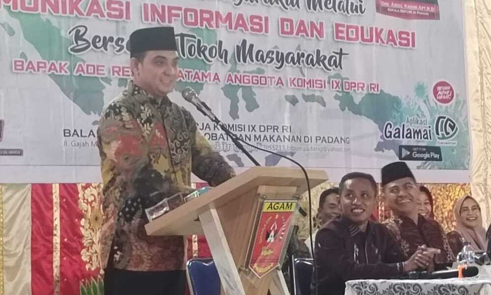 Anggota Komisi IX DPR RI, Ade Rezki Pratama bersama Balai Besar Pengawasan Obat dan Makanan (BBPOM) Padang menggelar kegiatan pemberdayaan masyarakat melalui Komunikasi Informasi dan Edukasi (KIE) Keamanan Obat dan Makanan di Hall Badminton Kelurahan Tabek Panjang Kecamatan Baso, Kabupaten Agam pada Minggu (08/10).
