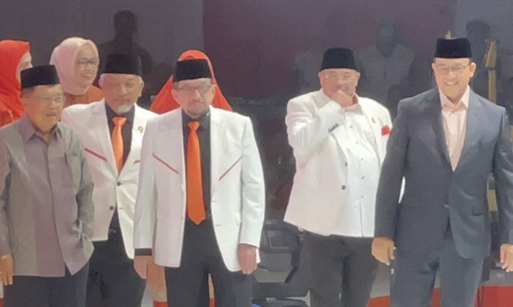 CARAPANDANG - Bakal calon presiden usungan Koalisi Perubahan untuk Persatuan (KPP) Anies Baswedan berjalan bersama mantan Wakil Presiden Republik Indonesia Jusuf Kalla (JK) di panggung Milad Ke-21 Partai Keadilan Sejahtera (PKS). Dilansir dari ANTARA, Anies Baswedan bersama Jusuf Kalla melangkah bersama elite PKS, yakni Ketua Majelis Syuro PKS Dr. Salim Segaf, Presiden PKS Ahmad Syaikhu, dan Sekretaris Jenderal PKS Aboe Bakar Al-Habsyi di atas panggung Milad Ke-21 PKS, sekitar pukul 13.13 WIB.