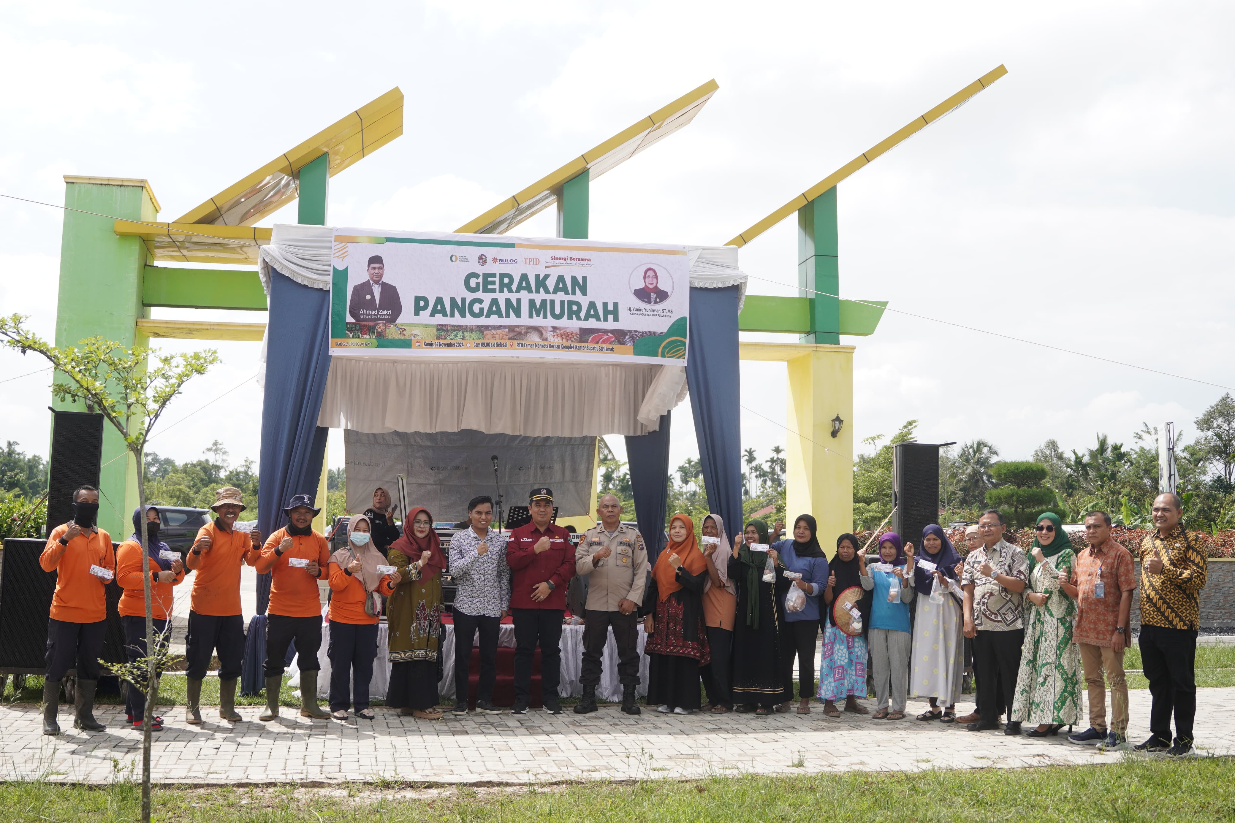 LIMA PULUH KOTA, CARAPANDANG - Pemerintah Kabupaten Limapuluh Kota bekerja sama dengan sejumlah OPD dan Badan Usaha Milik Negara (BUMN) menggelar Gerakan Pangan Murah (GPM) pada Kamis, (14/11/2024) di Taman Mahkota Berlian, Sarilamak. Menjual berbagai Sembako dengan standar harga produsen, GPM di Limapuluh Kota dibuka dan dipantau langsung oleh Pjs. Bupati Limapuluh Kota, Ahmad Zakri. Turut hadir dalam pembukaan Ketua DPRD Limapuluh Kota Doni Ikhlas, Ketua TP PKK Juwita Ahmad Zakri , unsur Forkopimda, dan Kepala Perangkat Daerah Pemkab Limapuluh Kota.