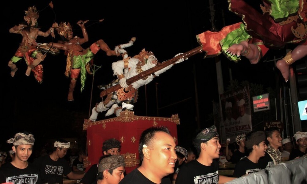 Sejak sore hari, para wisatawan sudah memadati area Jalan Raya Tuban dan area Patung Satria Gatot Kaca untuk menyaksikan parade Ogoh-ogoh saat malam Pengerupukan atau sehari Hari Raya Nyepi.