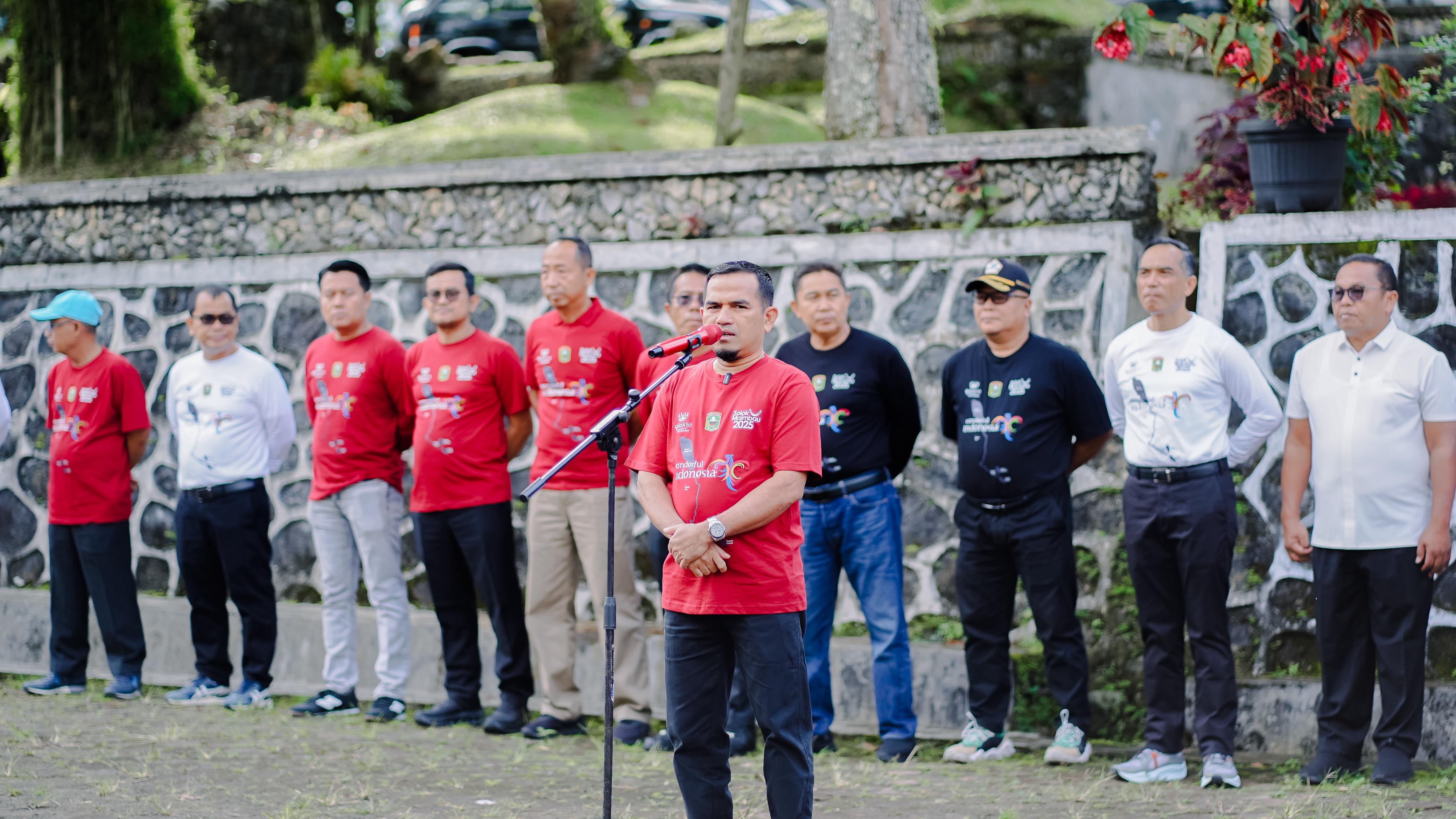 SOLOK, CARAPANDANG - Dalam rangka memperingati peringatan hari puncak Ulang Tahun Kabupaten Solok yang ke-112 Pemerintah Kabupaten Solok melaksanakan apel pagi bersama yang menjadi pembuka rangkaian perayaan bertajuk Solok Maimbau, Kamis (24/04/2025) di Lapangan Kantor DPRD Kabupaten Solok.