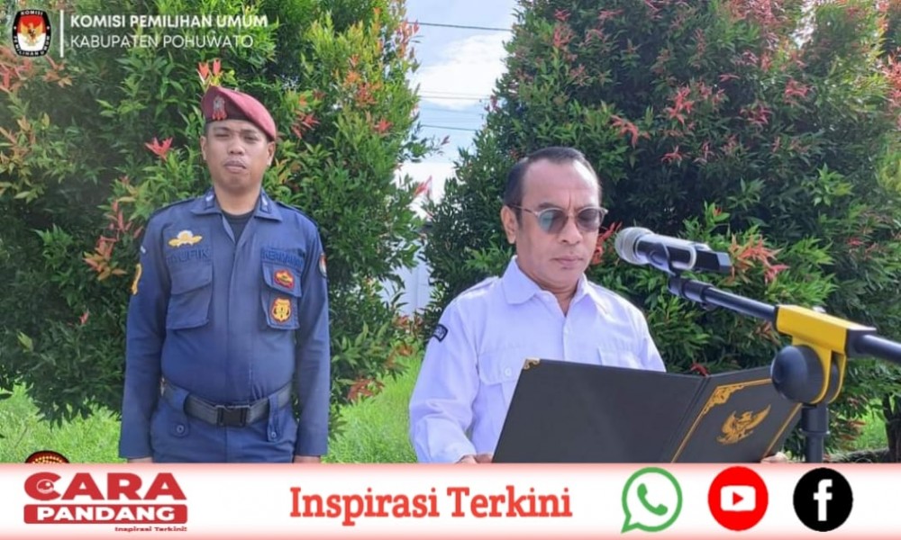 POHUWATO, CARAPANDANG - Anggota KPU Pohuwato Divisi Hukum dan Pengawasan Iwan Dolongseda saat menjadi pembina apel pagi rutin di lingkungan KPU Pohuwato, (10/6), mengingatkan tentang pentingnya kekompakan, kesolidan dan kebersamaan dalam melaksanakan tugas.