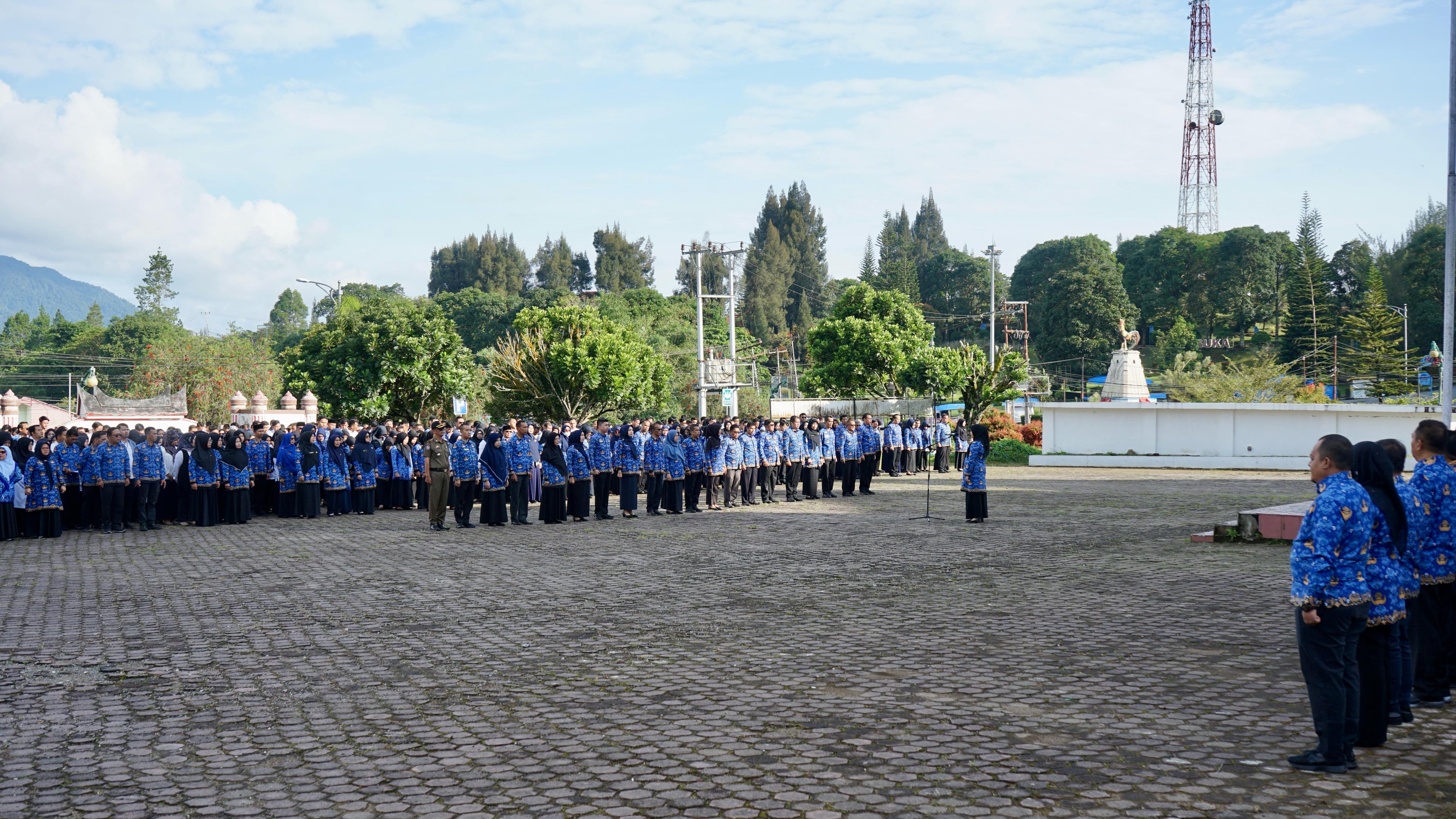SOLOK, CARAPANDANG - Pemerintah Kabupaten Solok menggelar apel pagi yang dihadiri oleh Sekretaris Daerah Kabupaten Solok, Medison, S.Sos, M.Si, serta para Staf Ahli Bupati, Asisten, Kepala OPD, ASN, dan THL. Apel dipimpin oleh Kepala Dinas Kominfo, Teta Midra, SSTP, M.Si, selaku Pembina Apel.