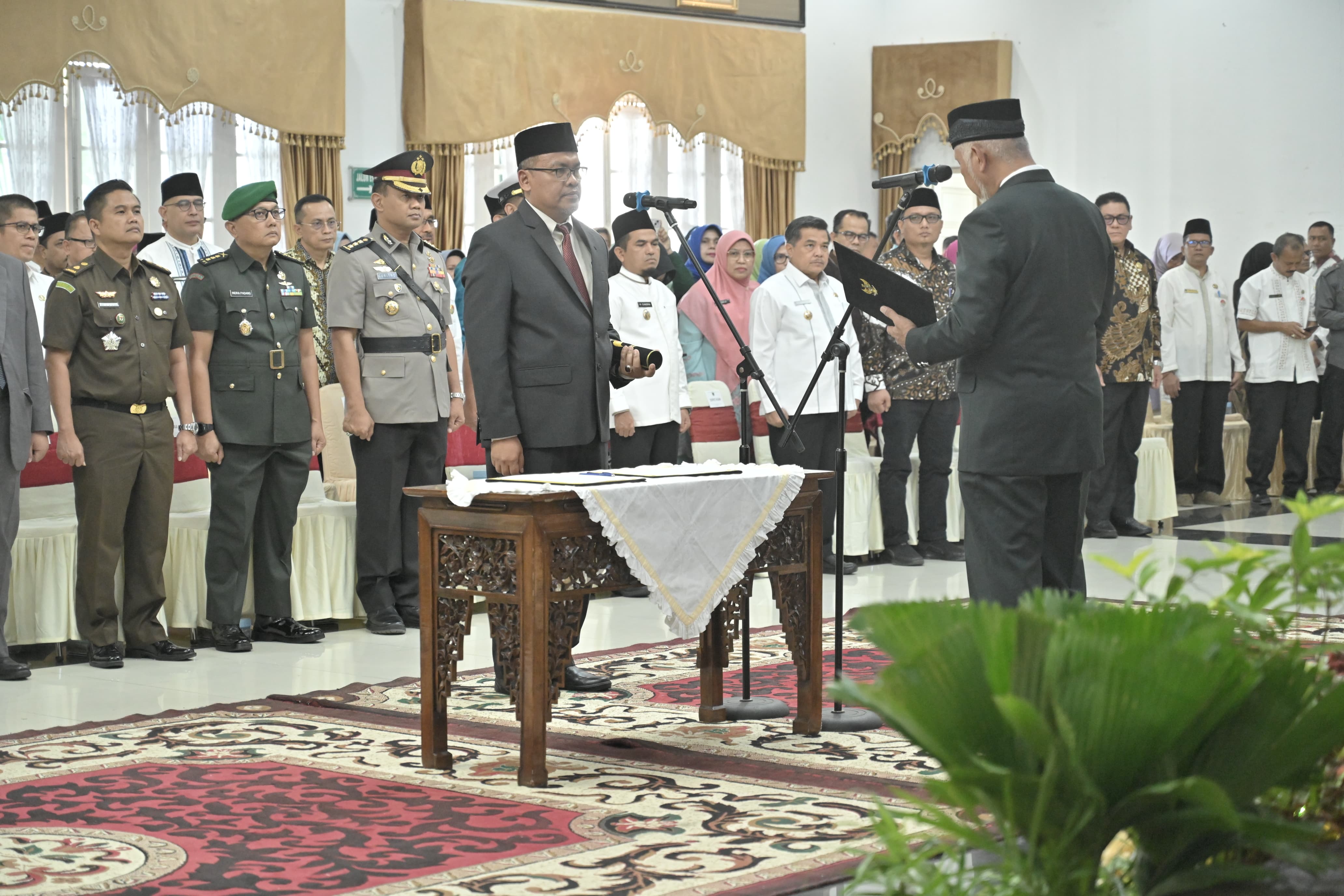 SUMBAR, CARAPANDANG - Gubernur Sumatera Barat (Sumbar), Mahyeldi Ansharullah secara resmi melantik dan mengambil sumpah Arry Yuswandi, S.KM, M.KM sebagai Sekretaris Daerah (Sekda) Provinsi Sumatera Barat yang baru. Pelantikan itu berlangsung khidmat di Auditorium Gubernuran, Jumat (13/6/2025).