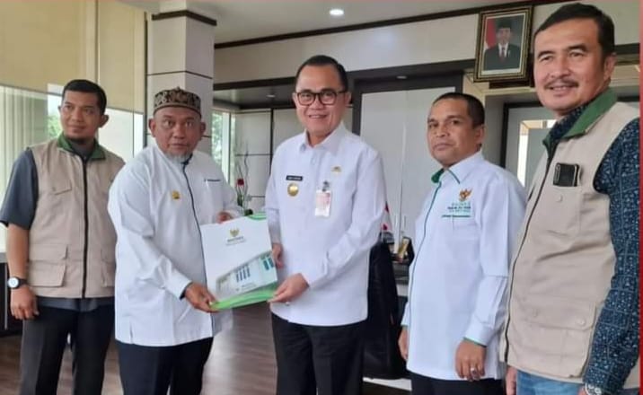 BUKITTINGGI, CARAPANDANG - Pjs Wali Kota Bukittinggi, H. Hani S. Rustam terima audiensi dari Badan Amil Zakat Nasional (BAZNAS). Kegiatan berlangsung di ruang kerja Wali Kota Bukittinggi, Kamis,(03/10/ 2024).
