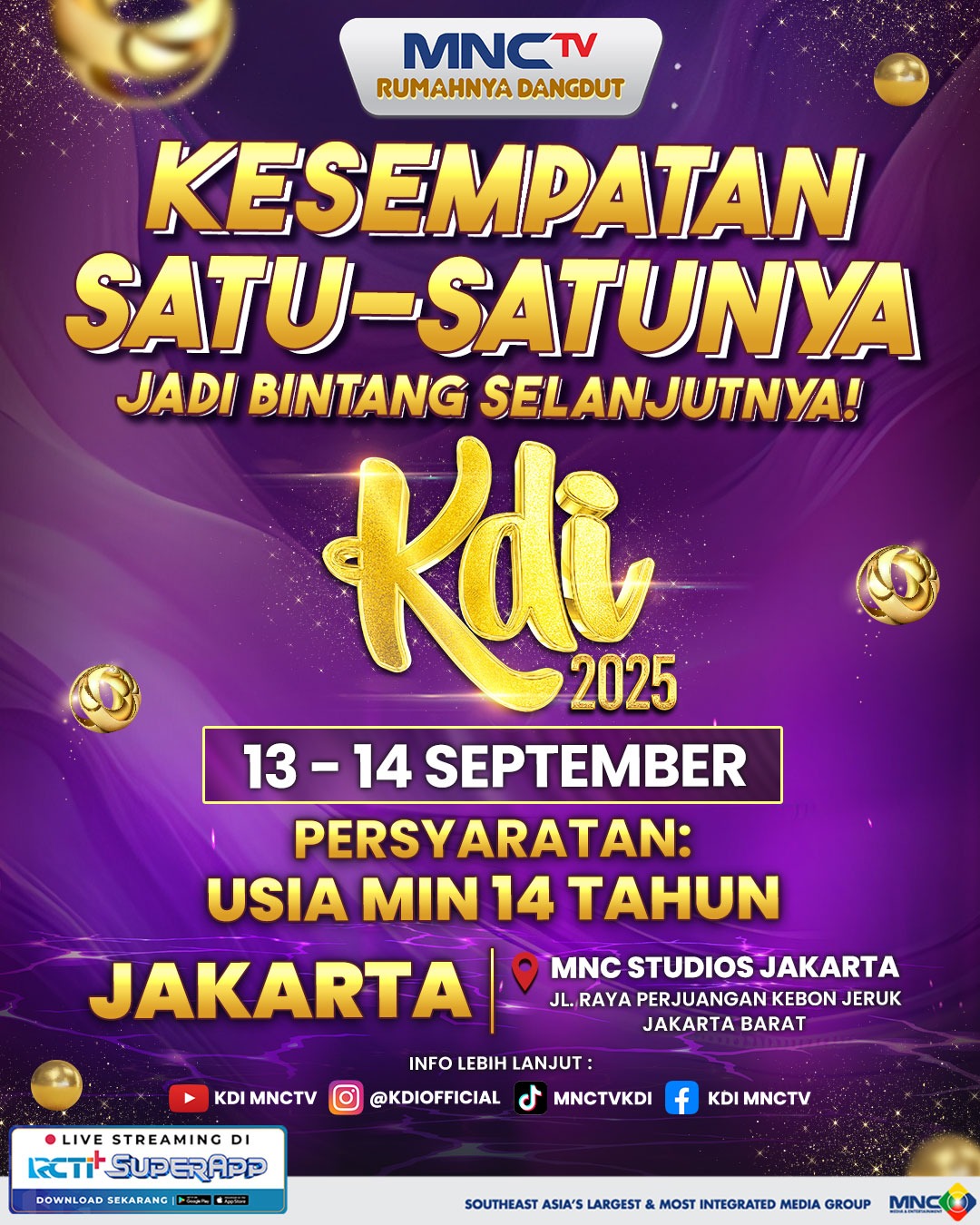 CARAPANDANG - Datang dan ikut langsung Audisi KDI 2025 Jakarta MNC Studios, Jakarta Barat