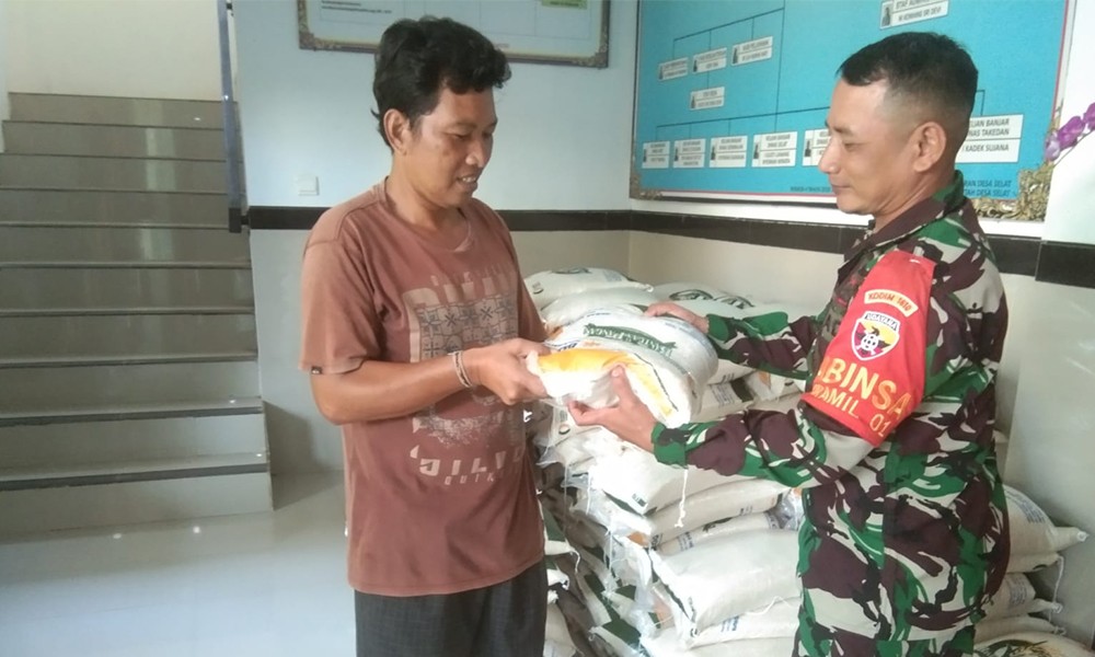 CARAPANDANG - Penyaluran ratusan kantong beras dari pihak Bulog dan Dinas Sosial Kabupaten Klungkung, Provinsi Bali pada Kamis (04/05/2023) mendapat pengawalan ketat dari aparat Babinsa.