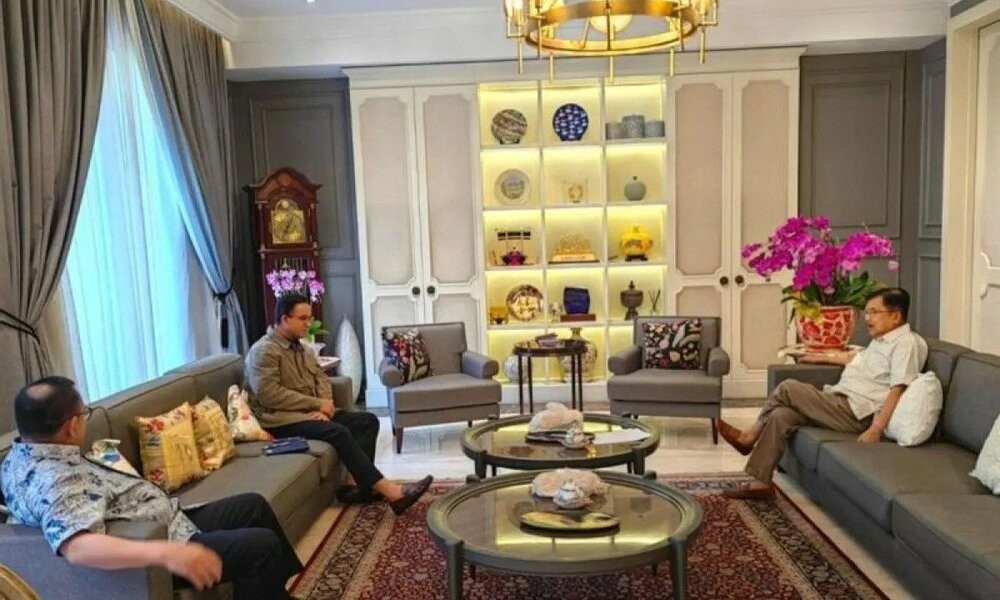 CARAPANDANG - Bakal calon presiden Anies Baswedan menemui Wakil Presiden Ke-10 dan Ke-12 Jusuf Kalla (JK) di kediaman JK di Jalan Brawijaya, Jakarta, Sabtu pagi.