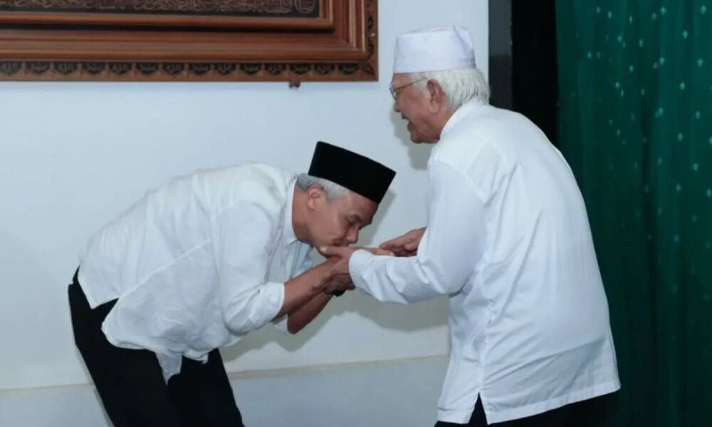 Selain makan dan diskusi, Gus Mus juga mendoakan Ganjar di akhir pertemuannya. Ganjar yang mengenakan baju putih dan kopiah hitam kemudian pamit kepada Gus Mus beserta keluarga.
