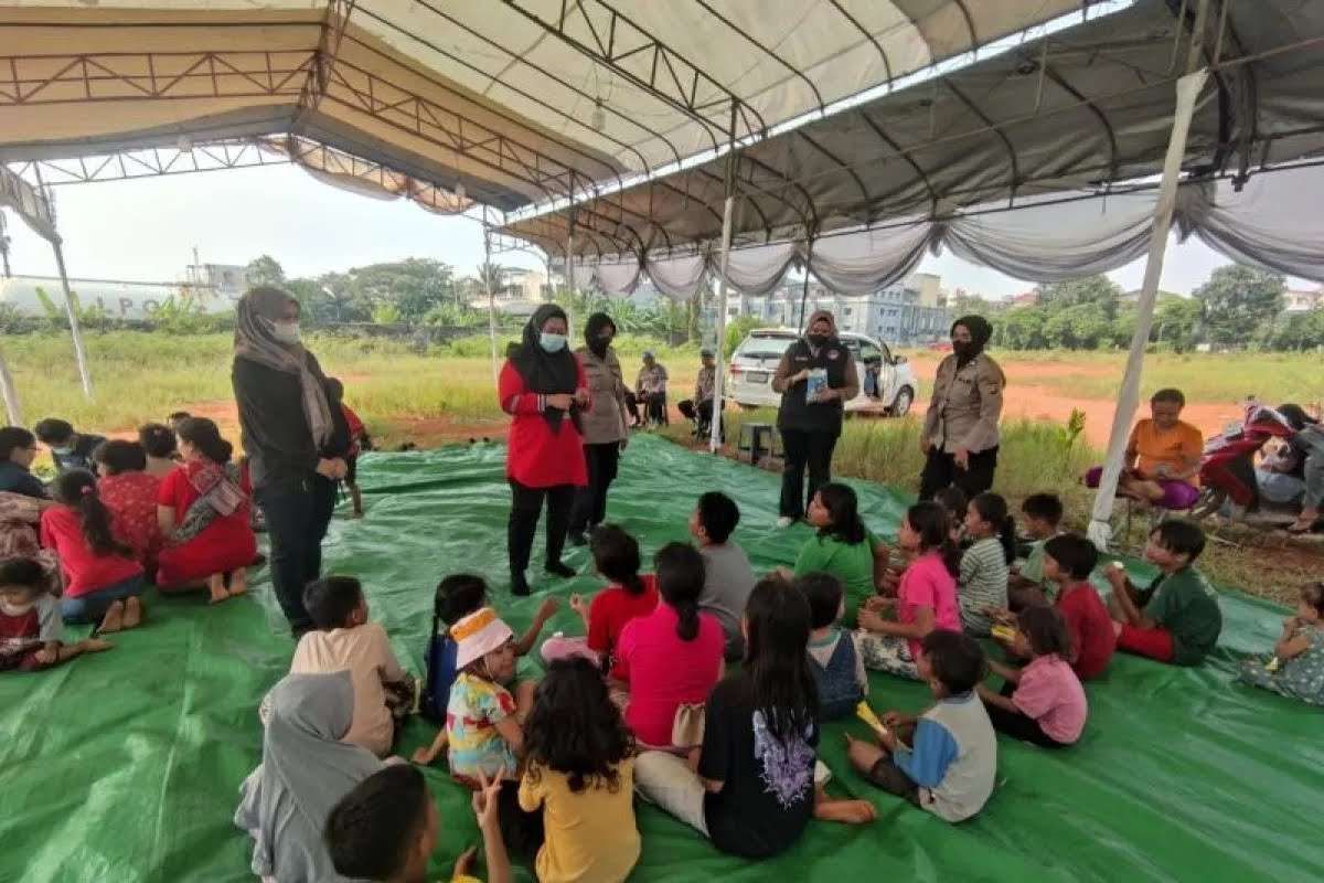 CARAPANDANG - Tim Polwan Polres Jakarta Utara menggelar penyembuhan trauma bagi para korban kebakaran yang di Kapuk Muara, Penjaringan, Jakarta Utara, Minggu (8/6/2025). Diharapkan, trauma healing ini bisa membantu mereka bisa segera bangkit dari trauma yang dialami pasca dilanda kebakaran hebat.