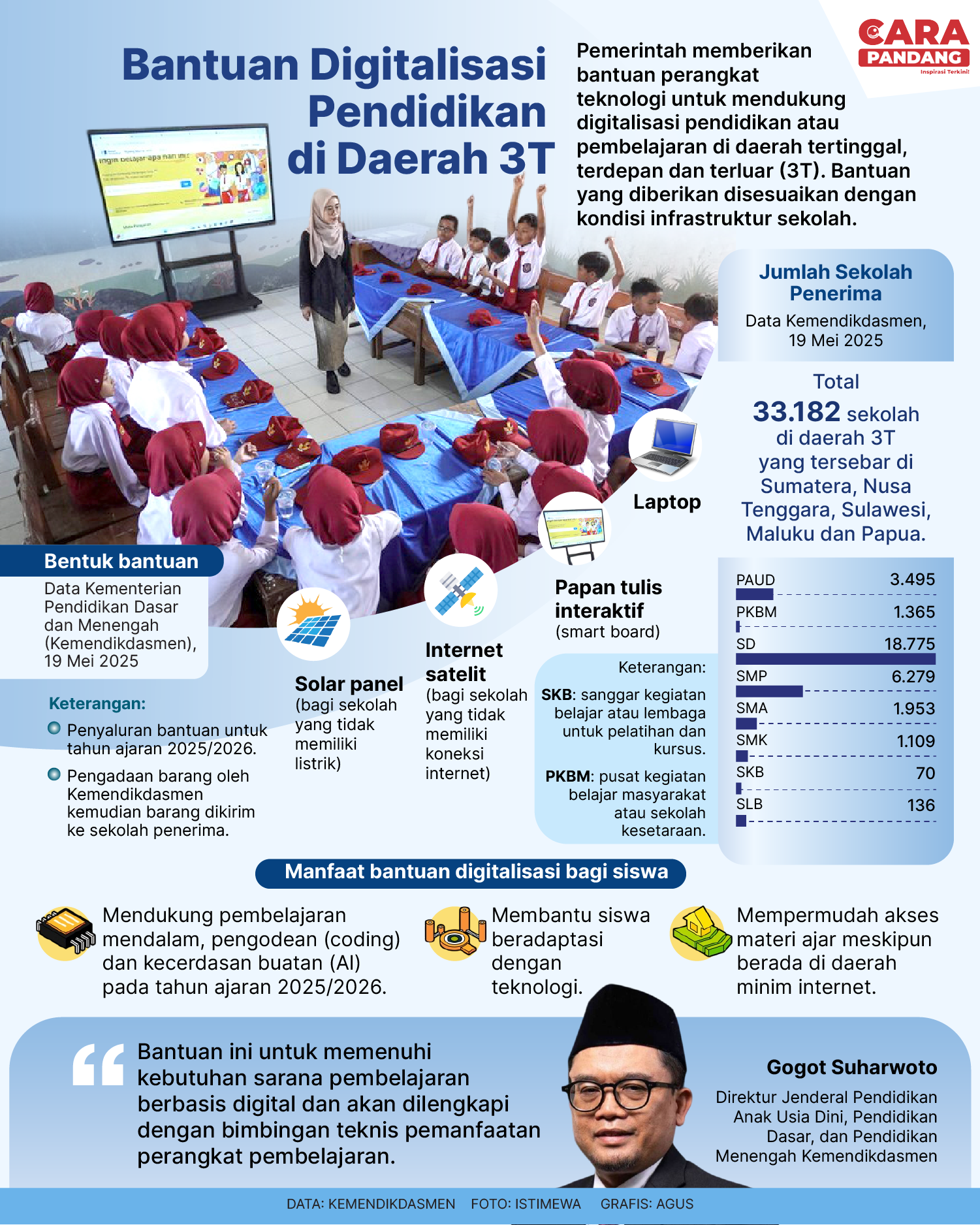Beranda Infografis Bantuan Digitalisasi Pendidikan di Daerah 3T Infografis Bantuan Digitalisasi Pendidikan di Daerah 3T Penulis Amira Izzati - 22 Mei 2025 07:28 0 CARAPANDANG - Bantuan Digitalisasi Pendidikan di Daerah 3T Tags Berita Sebelumnya Motor Listrik 'Sprint' dari Len Industri: Tangguh, Senyap, dan Siap Hadapi Medan Ekstrem Berita Berikutnya Indonesia Dalam Dilema Misi Perdamaian Dunia LEAVE A REPLY Cancel reply Comment: Please enter your comment! Name:* Please enter your name here Email:* You have entered an incorrect email address! Please enter your email address here Website: Save my name, email, and website in this browser for the next time I comment. Berita Teratas Kisah Ajaib Nabi Sulaiman dan Anak yang Berbakti kepada Orang Tua 8 Cara Merawat Kucing Kesayangan Agar Tubuhnya Selalu Sehat Minuman yang Mampu Redakan Batuk yang Menganggu Manfaat Ajaib Bawang Putih Bagi Kesehatan 8 Cara Menjaga Kesehatan Gigi dan Mulut yang Efektif Berita Terkait Berita Terkait Wajah Baru PP Tunas: Garda Terdepan Perlindungan Anak Indonesia Zoel Rachman - 31 Maret 2026 09:42 MBG 5 Hari Sepekan Masih Wacana Maliq - 30 Maret 2026 11:49 Presiden Ingin Semua Kendaraan Dikonversi ke Listrik Maliq - 30 Maret 2026 11:48 Kewaijiban PSE Terhadap Pengguna Anak Maliq - 30 Maret 2026 11:15