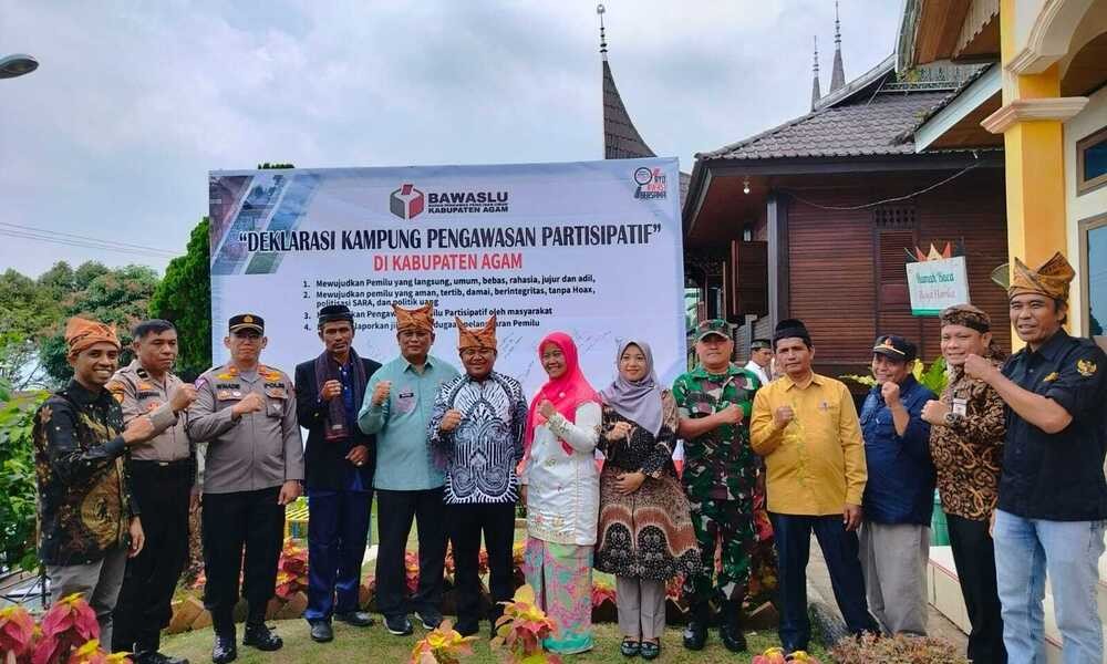 AGAM, CARAPANDANG.COM - "Bersama Rakyat Awasi Pemilu" selalu digaungkan Bawaslu Agam gaungan itu dideklarasikan di Nagari Sungai Batang, Kecamatan Tanjung Raya sebagai Kampung Pengawasan Partisipatif untuk memberikan pemahaman mengenai Pemilu 2024 dan ikut bersama Bawaslu awasi Pemilu Kamis (12/10).