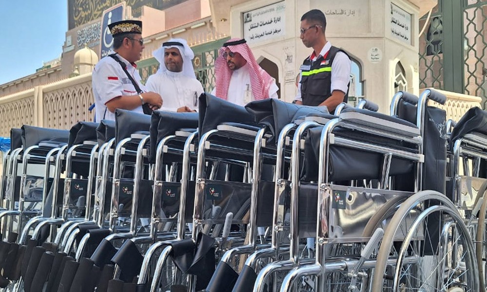 "Alhamdulillah, dalam rangka meningkatkan pelayanan terhadap jamaah ramah lansia, PPIH dapat bantuan kursi roda dari dua lembaga,” terang Direktur Pengelolaan Dana Haji dan Sistem Informasi Haji Terpadu, Direktorat Jenderal Penyelenggaraan Haji dan Umrah (Ditjen PHU) Kementerian Agama, Jaja Jaelani, Kamis (15/6/2023).