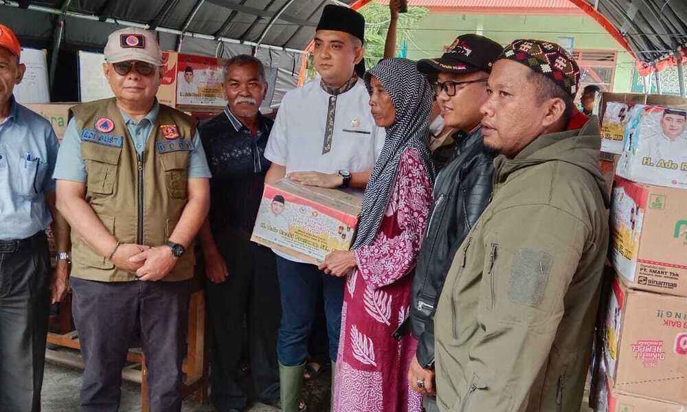 AGAM, CARAPANDANG.COM - Di samping Pertamina Region Medan, Anggota DPR RI Ade Rezki Pratama juga turut memberikan bantuan dalam penanggulangan banjir bandang.