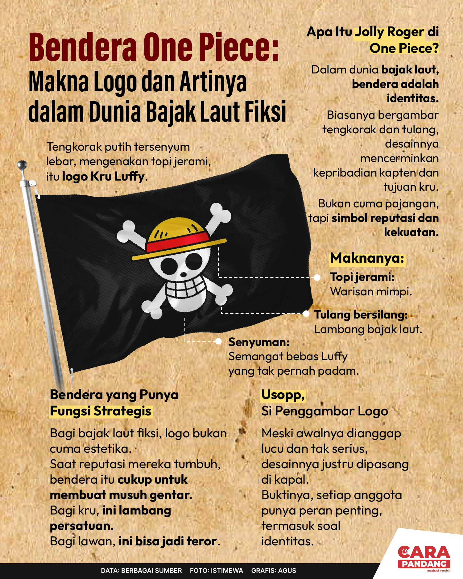 Beranda Infografis Bendera One Piece Infografis Bendera One Piece Penulis Edo Soeryadi - 05 Agustus 2025 07:51 0 CARAPANDANG.COM - Bendera One Piece. Tags HUTRI HUT RI Indonesia 80 OnePiece Berita Sebelumnya Tarif dan Kesepakatan Perdagangan Trump Tuai Kecaman dari Pakar di Dalam dan Luar Negeri Berita Berikutnya Indonesia Dalam Dilema Misi Perdamaian Dunia LEAVE A REPLY Cancel reply Comment: Please enter your comment! Name:* Please enter your name here Email:* You have entered an incorrect email address! Please enter your email address here Website: Save my name, email, and website in this browser for the next time I comment. Berita Teratas Kisah Ajaib Nabi Sulaiman dan Anak yang Berbakti kepada Orang Tua 8 Cara Merawat Kucing Kesayangan Agar Tubuhnya Selalu Sehat Minuman yang Mampu Redakan Batuk yang Menganggu Manfaat Ajaib Bawang Putih Bagi Kesehatan 8 Cara Menjaga Kesehatan Gigi dan Mulut yang Efektif Berita Terkait Berita Terkait Wajah Baru PP Tunas: Garda Terdepan Perlindungan Anak Indonesia Zoel Rachman - 31 Maret 2026 09:42 MBG 5 Hari Sepekan Masih Wacana Maliq - 30 Maret 2026 11:49 Presiden Ingin Semua Kendaraan Dikonversi ke Listrik Maliq - 30 Maret 2026 11:48 Kewaijiban PSE Terhadap Pengguna Anak Maliq - 30 Maret 2026 11:15