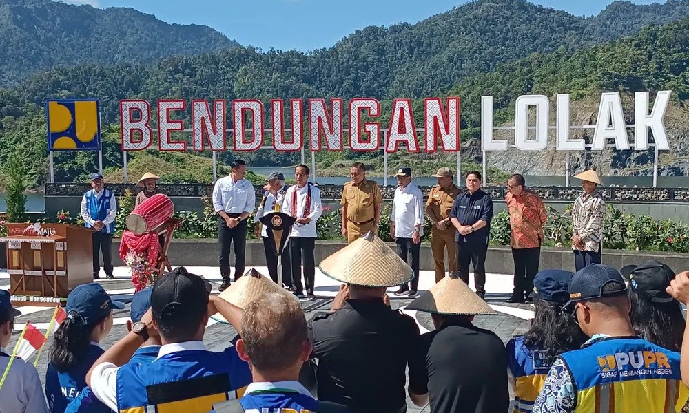 CARAPANDANG - Presiden Joko Widodo dalam kunjungan kerja ke Sulawesi Utara tiba di Kabupaten Bolaang Mongondow untuk meresmikan Bendungan Lolak, Jumat.