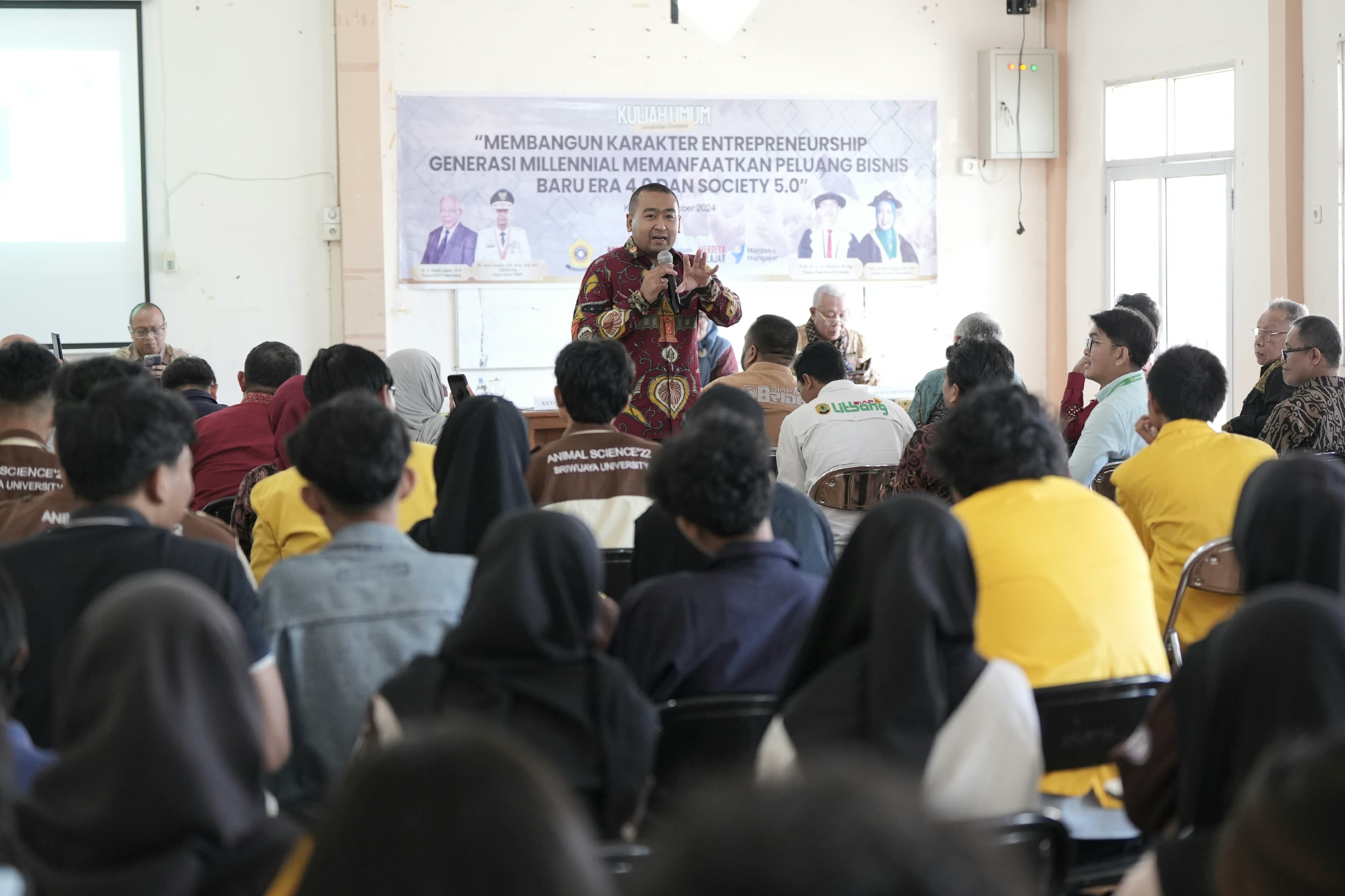 SUMBAR, CARAPANDANG - Pelaksana Tugas (Plt) Gubernur Sumatera Barat, Audy Joinaldy, memberikan kuliah umum di Universitas Sriwijaya (Unsri), Palembang, Kamis (17/10/2024). Dalam materinya, Audy menyampaikan tentang pentingnya membangun karakter entrepreneurship di kalangan generasi milenial dengan memanfaatkan peluang bisnis di era Revolusi Industri 4.0 dan Society 5.0.