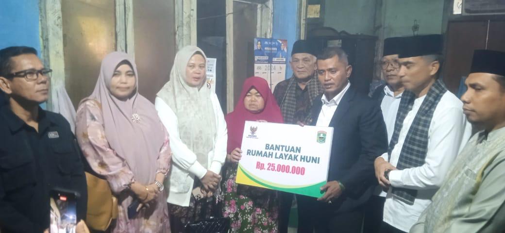 SOLOK, CARAPANDANG - Berkah bulan Ramadhan menghampiri keluarga Amril dan Nurijah, mereka mendapatkan bantuan rumah layak huni yang diserahkan oleh Bupati Solok Jon Firman Pandu dan istri di kediaman mereka.