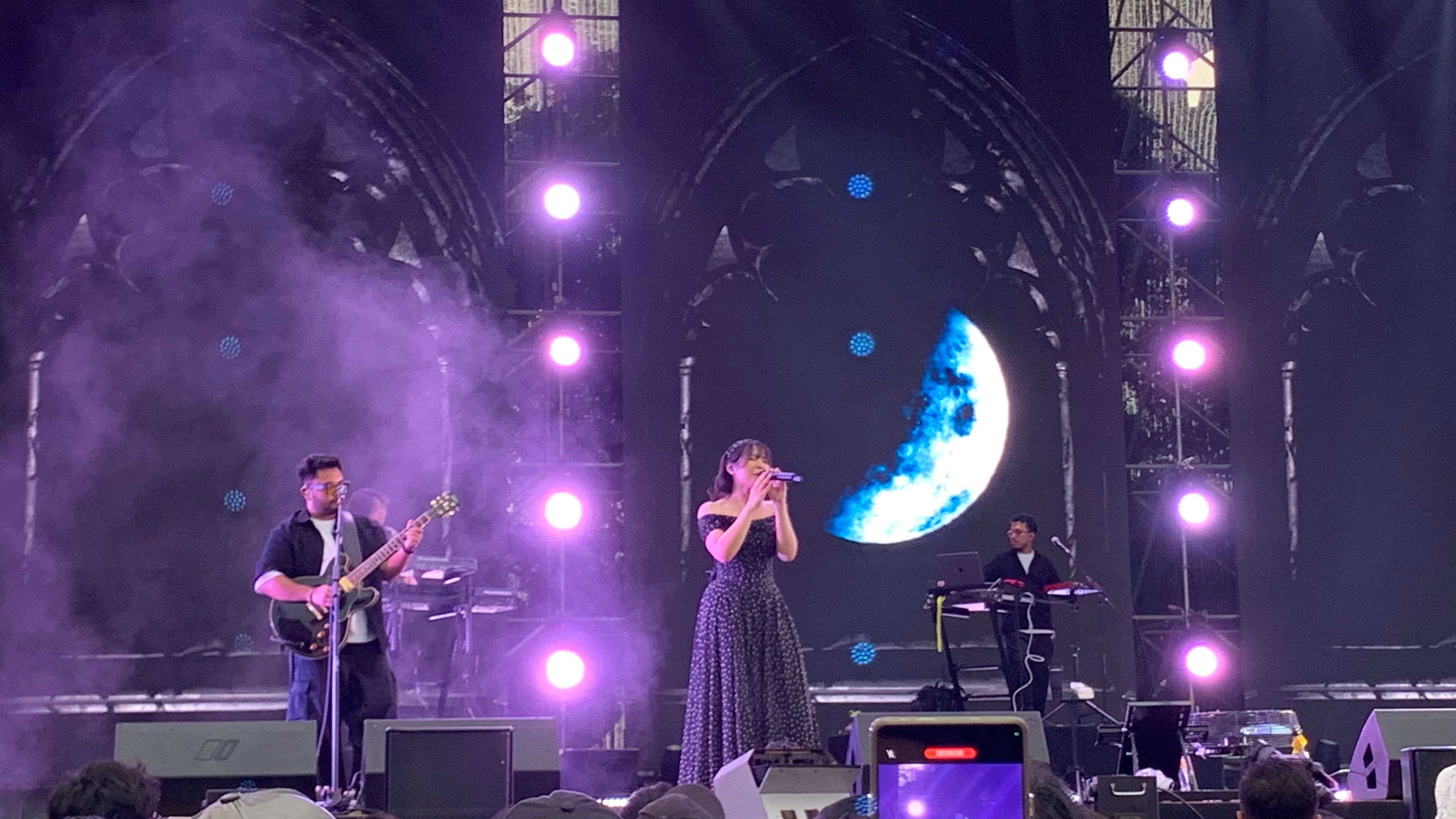Penyanyi muda itu mengenakan dress hitam polkadot dengan bandana, menambah kesan anggun seperti nona Belanda. Aksesoris tersebut membuat penampilannya semakin mencuri perhatian sejak awal tampil.