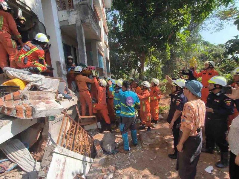 Foto yang diabadikan pada 1 April 2025 ini menunjukkan operasi penyelamatan seorang wanita yang terjebak dalam reruntuhan di Nay Pyi Taw, Myanmar. Seorang wanita berusia 63 tahun yang terjebak dalam reruntuhan selama 91 jam pascagempa bumi dahsyat di Myanmar berhasil diselamatkan pada Selasa (1/4) di Nay Pyi Taw, seperti dilaporkan Departemen Pemadam Kebakaran Myanmar (Myanmar Fire Services Department/MFSD). (Xinhua/MFSD)
