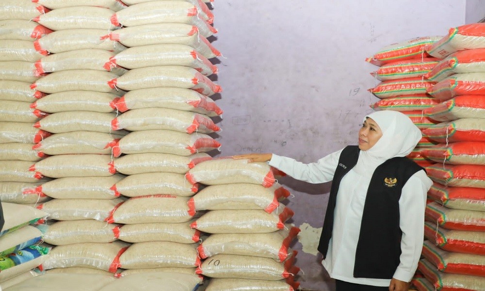 Gubernur Jawa Timur Khofifah Indar Parawansa bersama perum Bulog menyalurkan Cadangan Pangan Pemerintah (CPP) berupa beras sebanyak 102.754,26 ton.