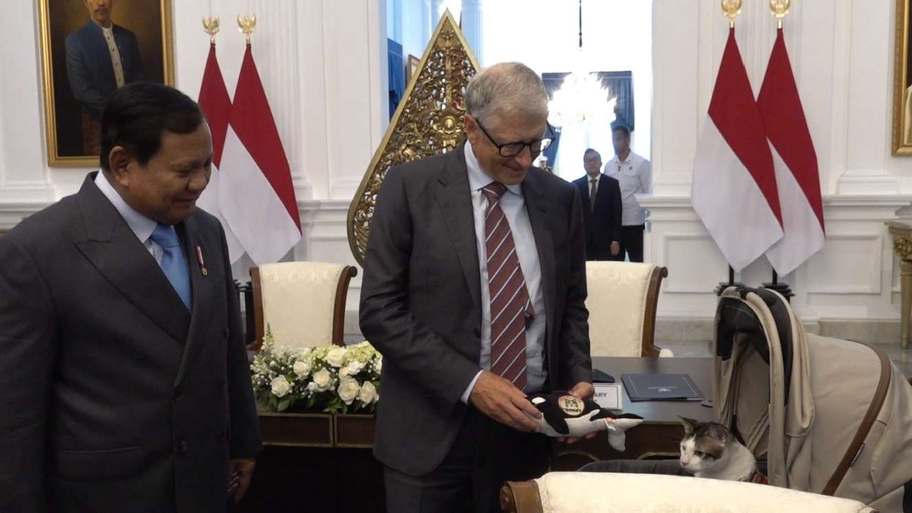 "Ini hadiah yang saya bawa. Baiklah Bobby, kamu terkenal," kata Bill Gates disambut tawa hangat Presiden Prabowo di Istana Merdeka, Jakarta, Rabu (7/5/2025).