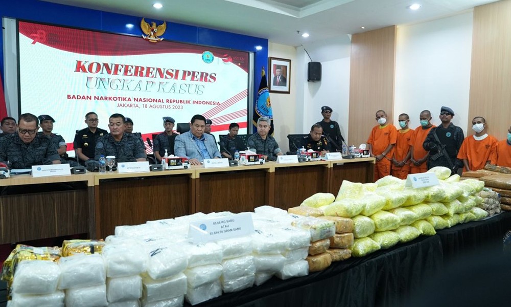 CARAPANDANG - Badan Narkotika Nasional (BNN) mengungkap lima kasus peredaran gelap narkotika dalam konferensi pers yang digelar Jumat (18/8/2023). Dari lima kasus tersebut, salah satunya merupakan hasil kerja sama dengan Bea Cukai. Kepala Subdirektorat Humas dan Penyuluhan Bea Cukai, Encep Dudi Ginanjar mengatakan, dalam penindakan kasus narkotika pada 30 Juli 2023 tersebut, tim gabungan BNN dan Bea Cukai mengamankan dua orang tersangka berinisial Az dan Wa di Perairan Lhokseumawe, Aceh. Keduanya diamankan ketika tengah membawa narkotika dari Thailand menuju Aceh melalui jalur laut dengan menggunakan kapal kecil jenis Oskadon.