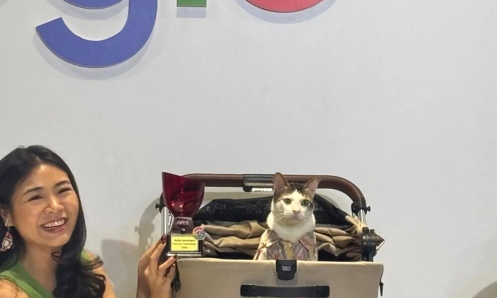 Bobby pun hadir secara langsung bersama seorang pendampingnya untuk menerima penghargaan dari Google Indonesia tersebut. Kucing lucu itu tampil menawan dalam balutan busana batik berwarna pastel karya Didit Hediprasetyo yang berkolaborasi bersama salah satu jenama fesyen lokal.