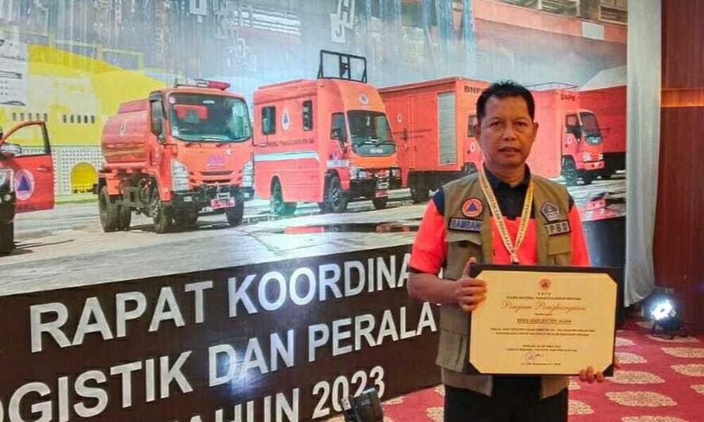 AGAM, CARAPANDANG.COM - Badan Penanggulangan Bencana Daerah (BPBD) Kabupaten Agam meraih penghargaannya pemenang terfavorit kompetisi yel-yel pada momen bulan peringatan Pengurangan Risiko Bencana (PRB) 2023.