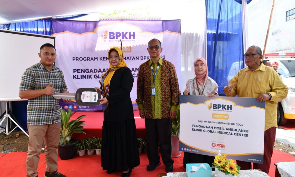 CARAPANDANG - Badan Pengelola Keuangan Haji Republik Indonesia (BPKH RI) melaksanakan Program Kemaslahatan berupa pengadaan mobil ambulans untuk Klinik Global Medical Center di Subang. Penyerahan mobil ambulans dilakukan bersama mitra kemaslahatan BPKH yaitu Laznas PPPA Daarul Qur'an pada Sabtu (15/4).