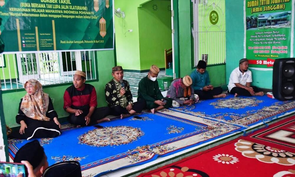 POHUWATO, CARAPANDANG.COM - Buka bersama tak lupa jalin silaturahmi (Bukber Takjil) oleh Kerukunan Pelajar Mahasiswa Indonesia Pohuwato (KPMIP) di Panti Asuhan Sumayyah, Pohuwato dihadiri langsung Bupati Pohuwato, Saipul A. Mbuinga didampingi PB KPMIP, IKA KPMIP diwakili Jois Hunowu dan penceramah Ust. Wisnu Pakaya, Selasa, (18/4/2023).