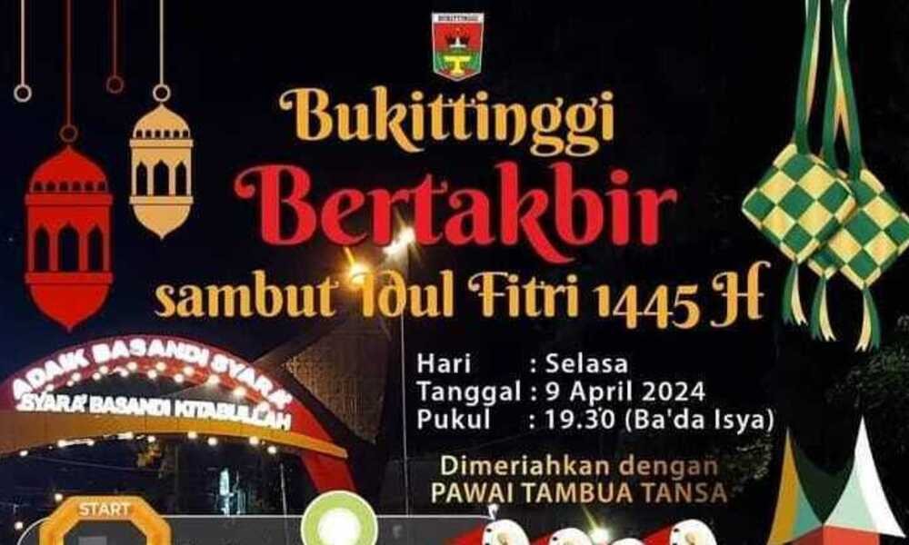 Dalam rangka menyambut Hari Raya Idul fitri 1445H, Pemerintah Kota Bukittinggi akan menggelar Bukittinggi Bertakbir, pada Hari Selasa tanggal 9 April 2024 tempat gerbang budaya ABS-SBK.