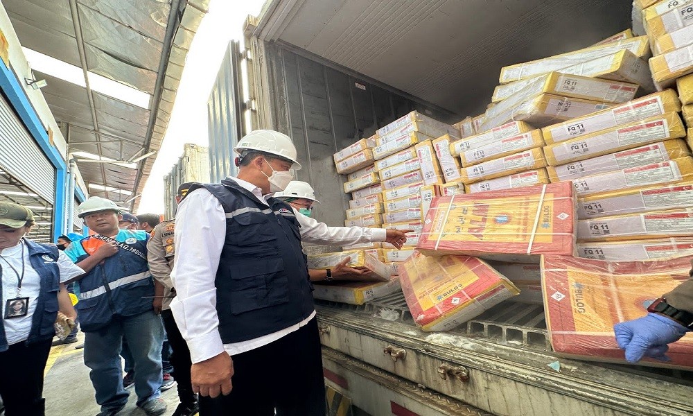 Guna mempercepat masuknya cadangan stok daging nasional untuk mencukupi kebutuhan dalam negeri utamanya saat Ramadan dan Idulfitri, Direktur Utama Perum BULOG, Budi Waseso, memantau langsung kedatangan daging kerbau beku impor oleh BULOG di New Priok Container Terminal One (NPCT1) - Tanjung Priok, Rabu (12/4/2023)