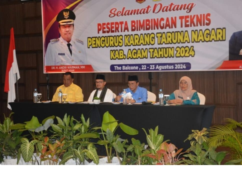 AGAM, CARAPANDANG - Bupati Agam, diwakili Asisten II Setda Agam, Jetson, buka secara resmi Bimbingan Teknis (Bimtek) bagi Pengurus Karang Taruna Nagari, yang digelar Dinas Sosial Kabupaten Agam, di Hotel Balcone, Tilatang Kamang, Kamis (22/8).