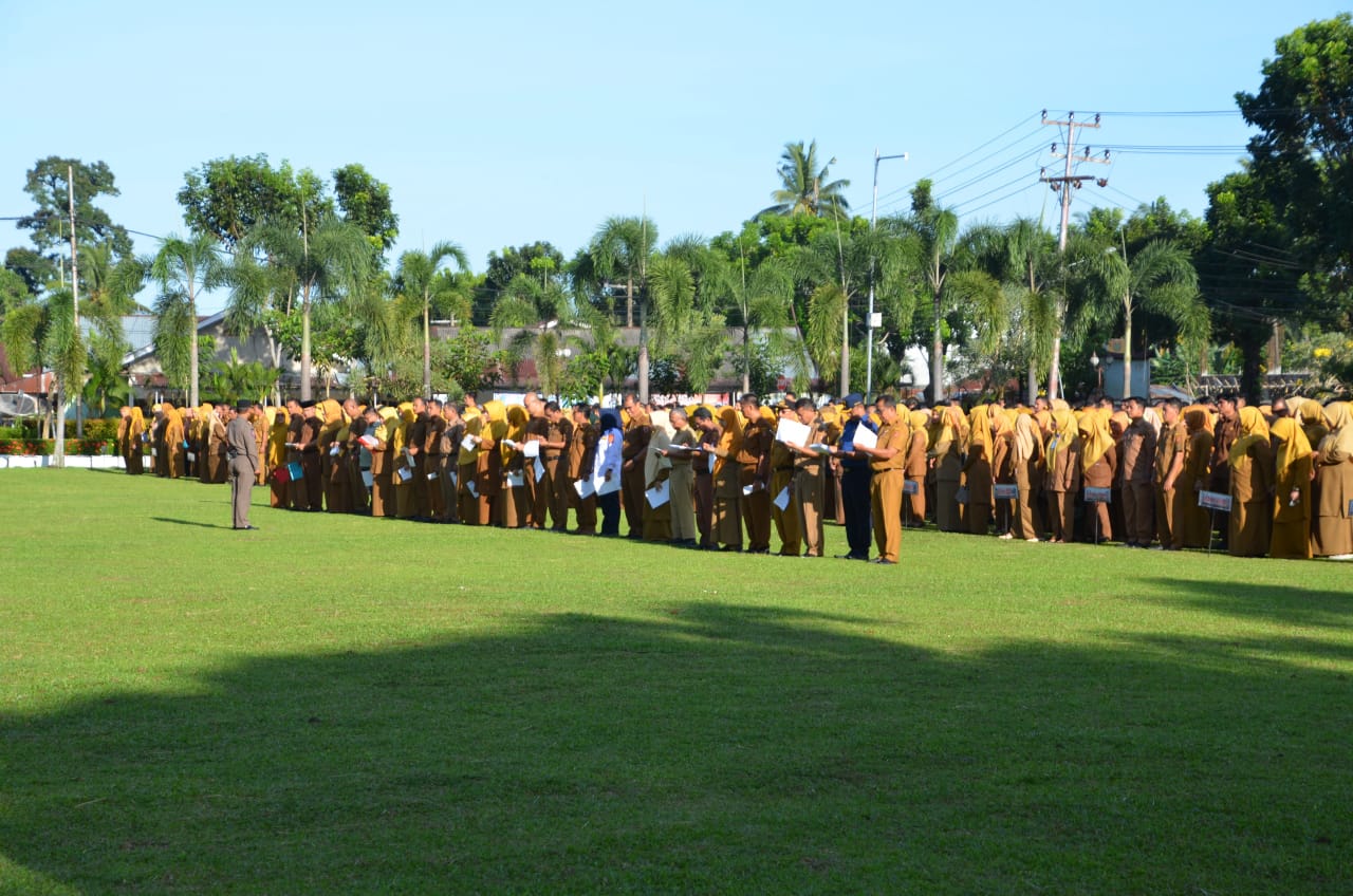 Di samping itu, Bupati juga memohon maaf kepada seluruh peserta apel atas kebersamaan selama ini, karena memasuki masa cuti kampanye sehubungan maju sebagai petahana.
