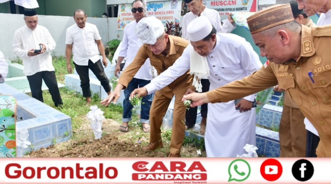 Bupati Pohuwato, Saipul A. Mbuinga, bersama Wakil Bupati, Iwan S. Adam, menghadiri perkabungan atas wafatnya salah satu tokoh perempuan dan pensiunan ASN Kabupaten Pohuwato, Almarhumah Hadidjah Ayuba