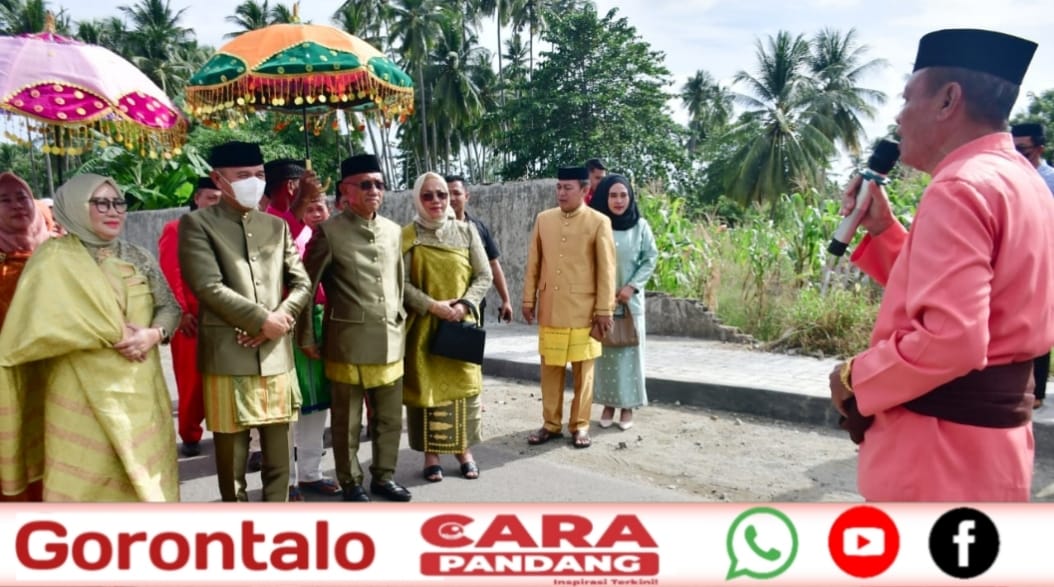 Bupati Pohuwato, Saipul A. Mbuinga, bersama Wakil Bupati, Iwan S. Adam, didampingi Ketua TP-PKK Pohuwato, Selvi Mbuinga Monoarfa, serta Wakil Ketua TP-PKK Pohuwato, Risnawati Ali, menjalani prosesi adat Mopotilolo